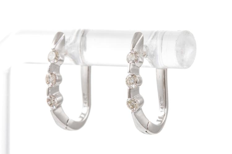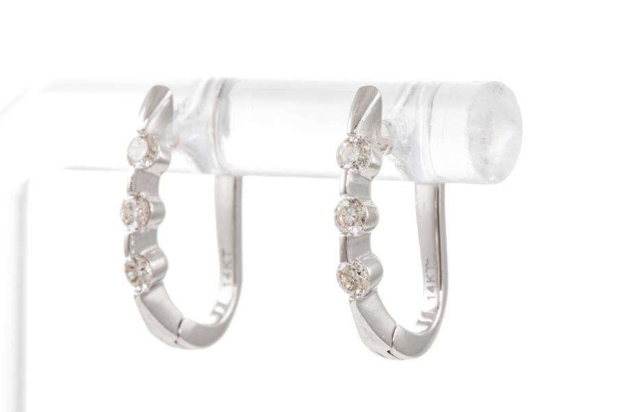 Diamond earrings with 6 round Diamonds totalling 0.23cts (Estimated grading: H SI). 14ct white gold. Weight: 1.8g. (New)^