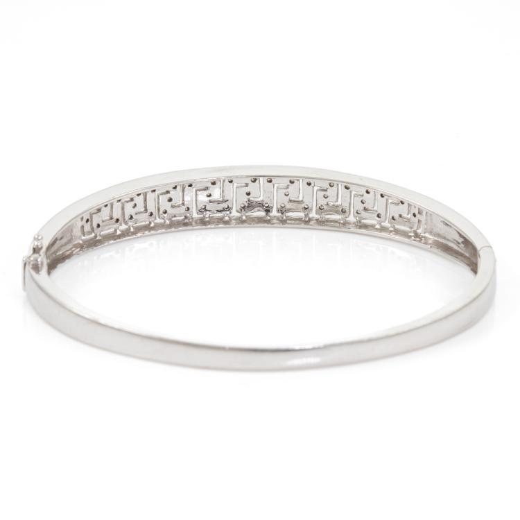 Diamond hinged bangle with round natural Diamonds totalling 0.25ct. 9ct white gold. Circumference: 17.5cm. Width: 3.6mm-8.9m. Weight: 16.7g. (Pre-owned)