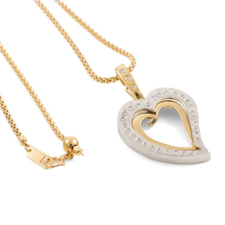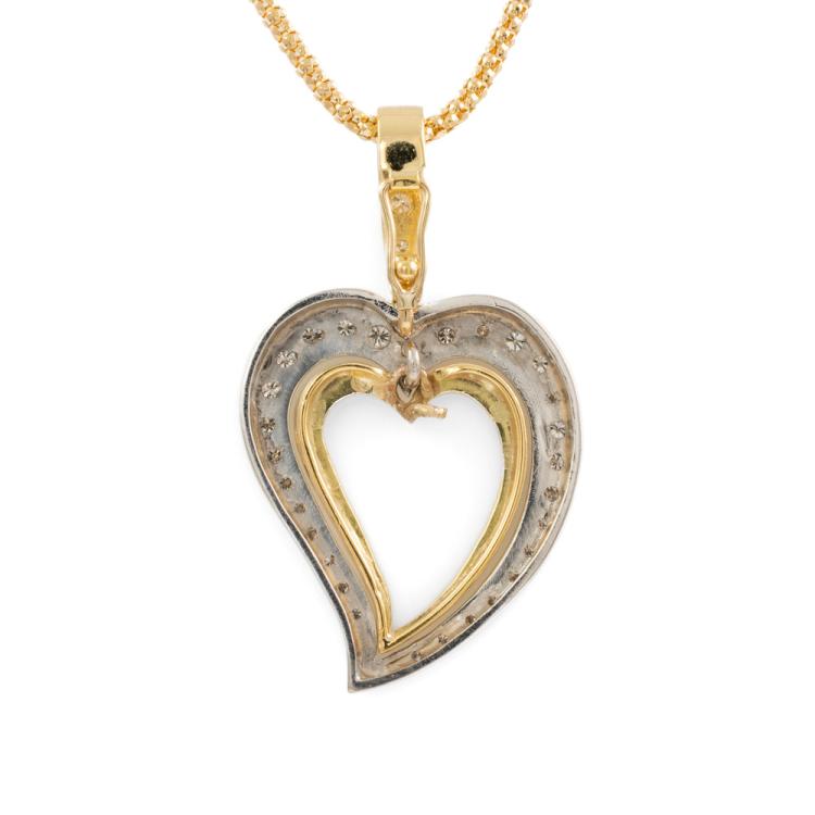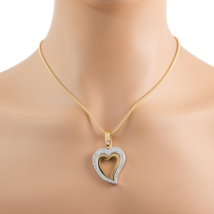 Heart design enhancer pendant with round natural Diamonds totalling approximately 0.50ct (Estimated grading: I-J SI). 18ct yellow & white gold with 18ct yellow gold adjustable 60cm chain. Weight: 16.5g. (Pre-owned)