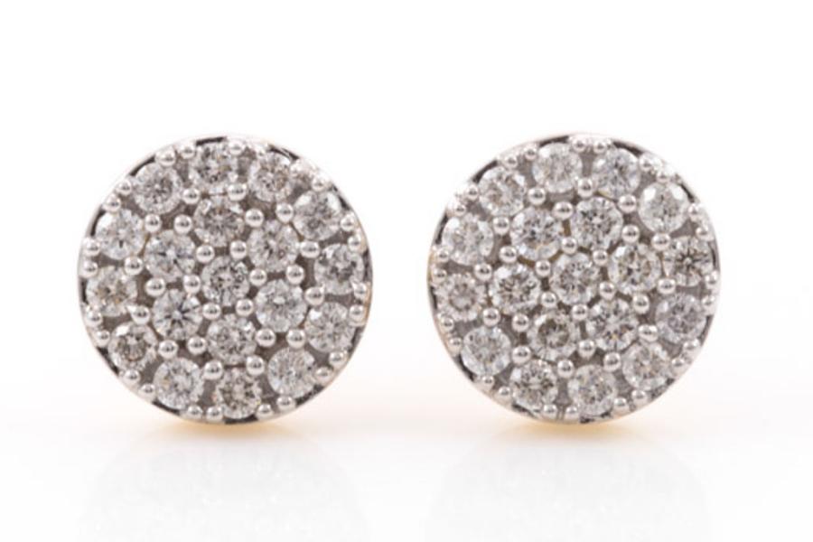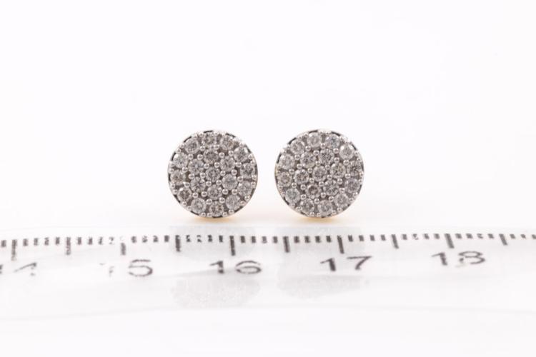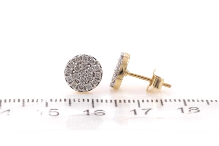 Diamond earrings with 38 round diamonds totalling 0.51cts. (Estimated grading: H SI). 14ct yellow gold. Weight: 2.4g. (New)^
