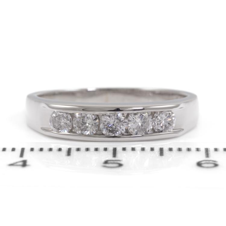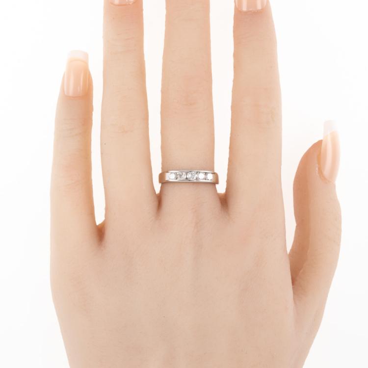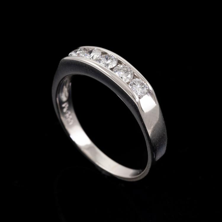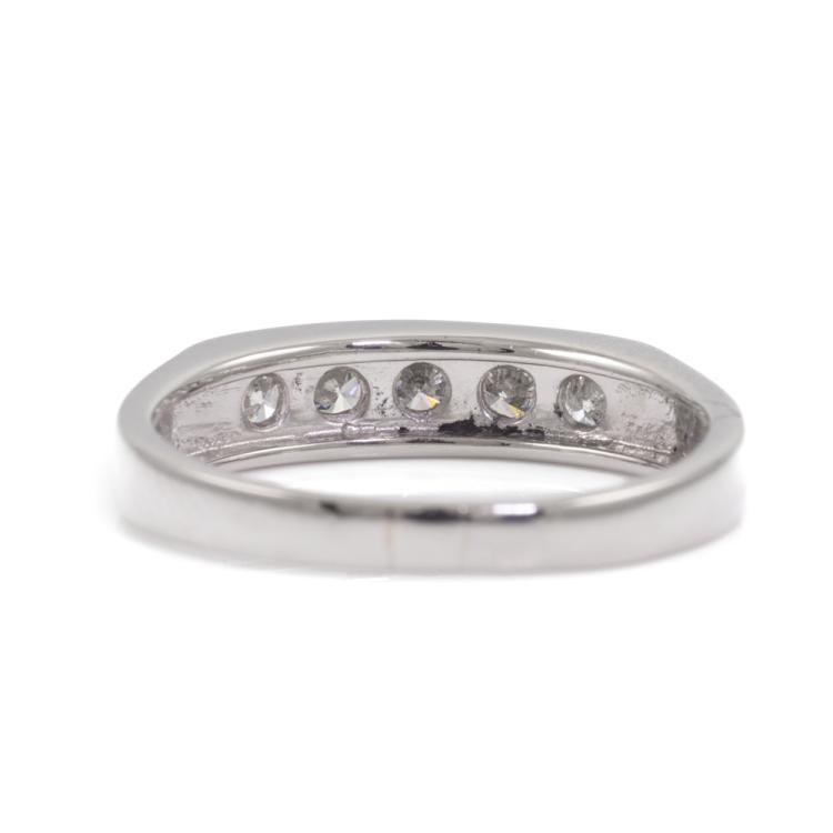 Diamond eternity ring with 5 round Natural Diamonds totalling 0.51ct (Estimated grading: G P1). Platinum - 900. Ring size M. Weight: 4.6g. (Pre-owned)^