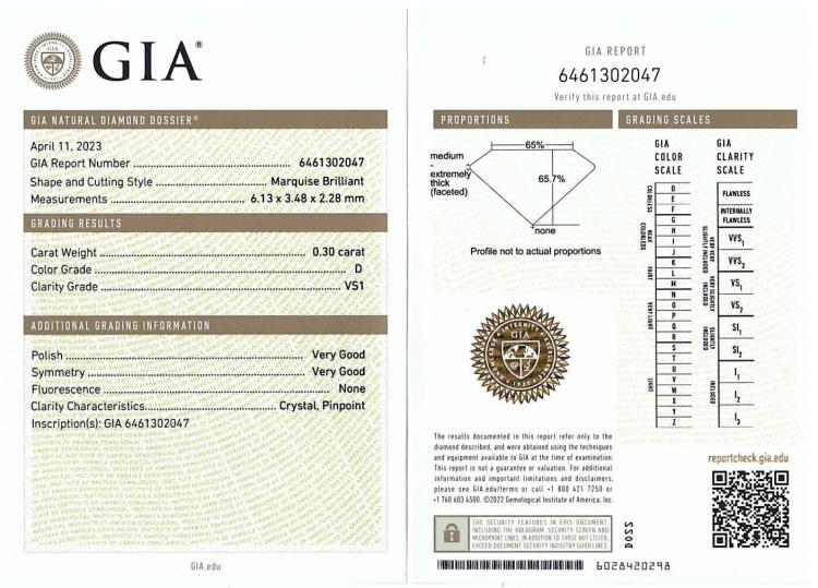 A loose pair of marquise cut Natural Diamonds totalling 0.60cts (both with GIA summary reports both graded as D VS1 # 6461302047, 6462469263