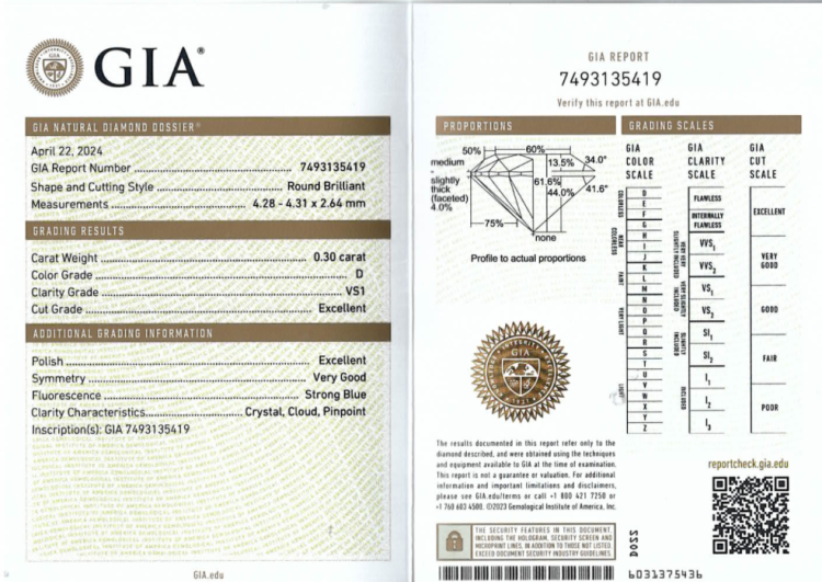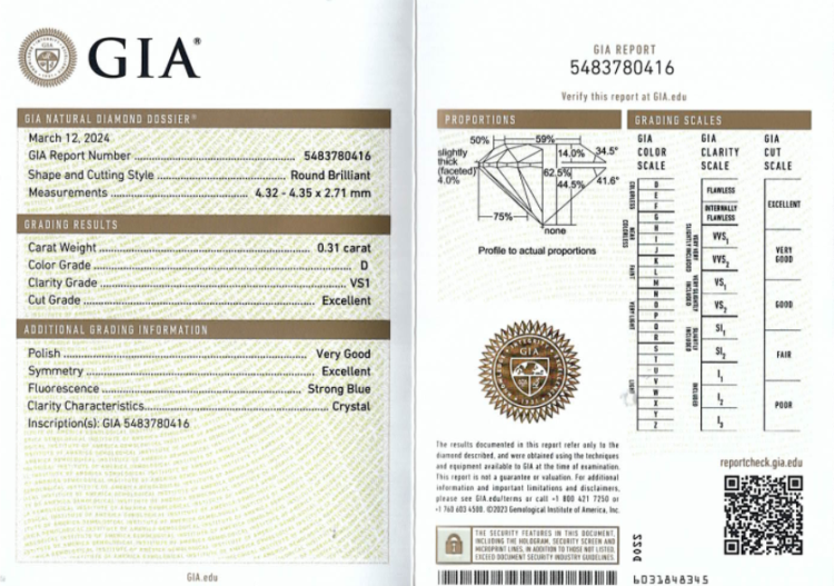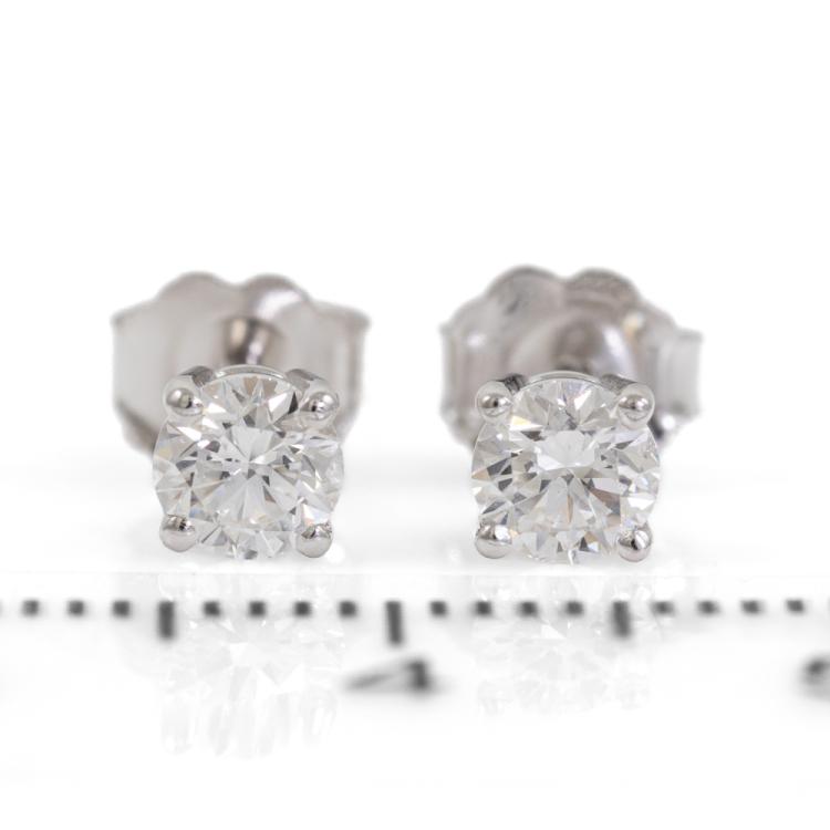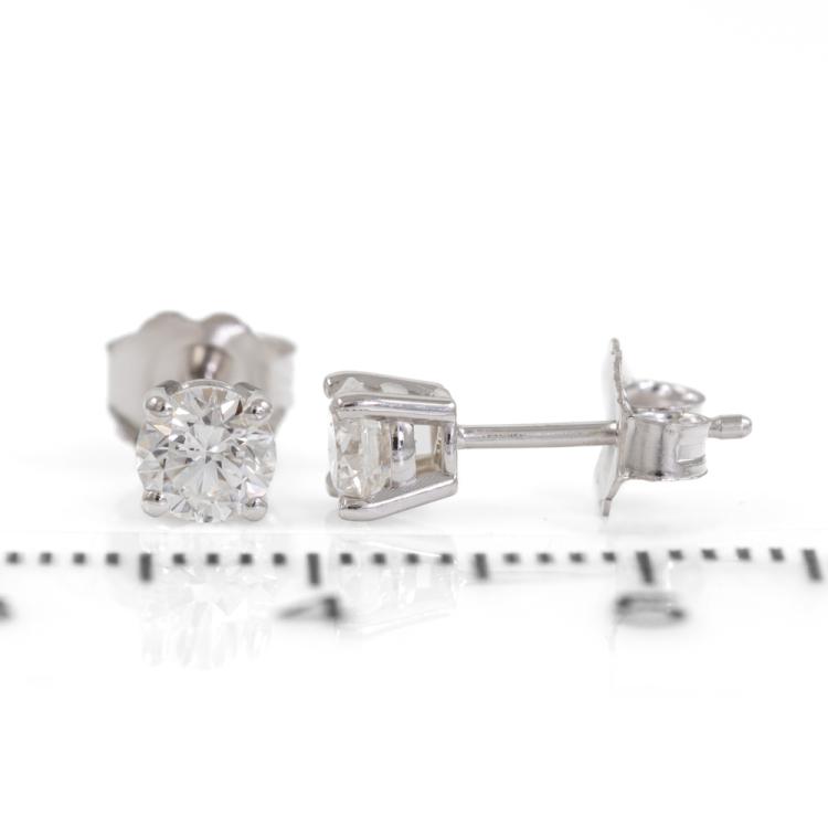 Diamond stud earrings with 2 round brilliant cut natural Diamonds totalling 0.61ct (with GIA Summary Reports graded as D VS1 #5483780416, 7493135419). 18ct white gold. Weight: 0.9g. (New)