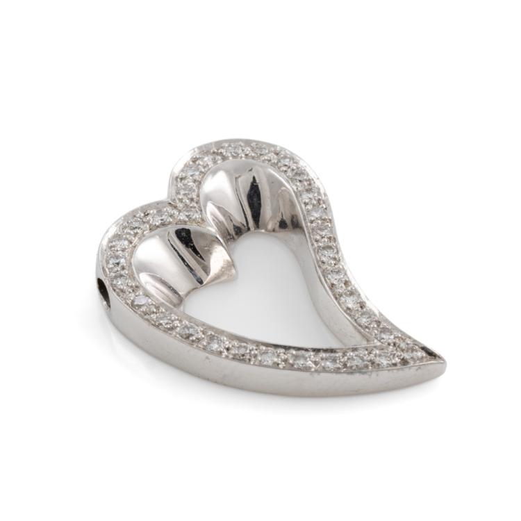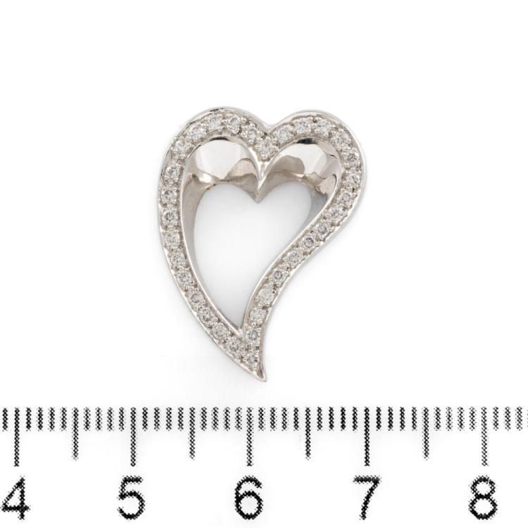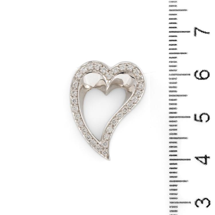 Heart design pendant with round Natural Diamonds totalling approximately 0.64cts (Estimated grading: G VS). 18ct white gold. No chain provided. Weight: 7.2g. (Pre-owned)