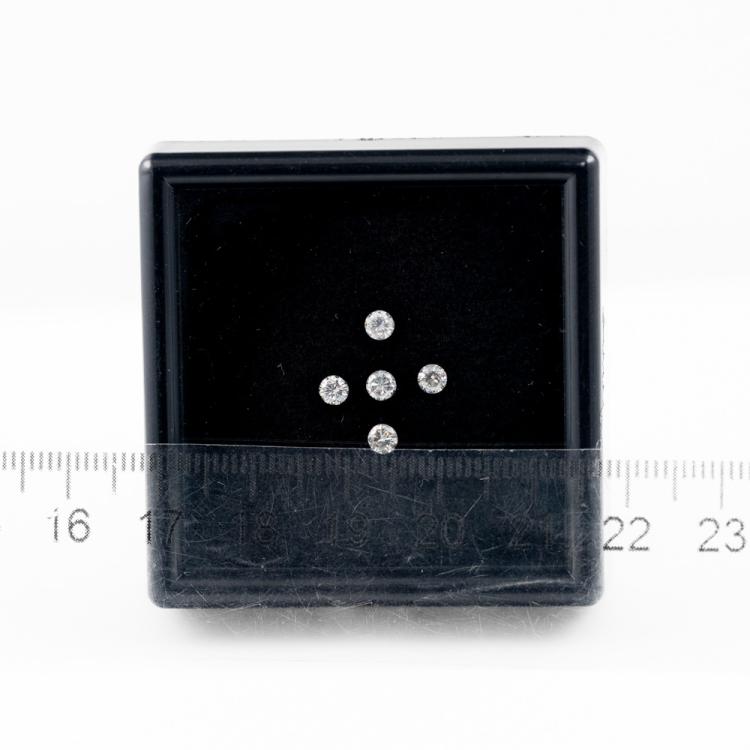 A loose parcel of 5 round brilliant cut Natural Diamonds totalling 0.65cts (Estimated grading: H-J P1-2). Approximate size: 3.15mm. (Pre-owned)^