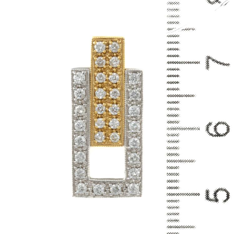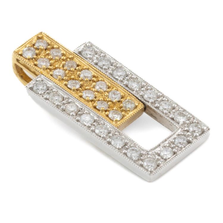 Diamond sliding dress pendant with round natural Diamonds totalling 0.66ct (Estimated grading: G-H SI). 18ct yellow & white gold. No chain provided. Weight: 4.0g. (Pre-owned)