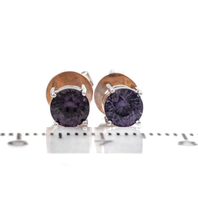 Spinel stud earrings with round purple Ceylon Natural Spinel totalling 0.88cts. 14ct white gold (note rhodium plating faded on backs). Weight: 1.6g. With GGTL report #200872. (As new)