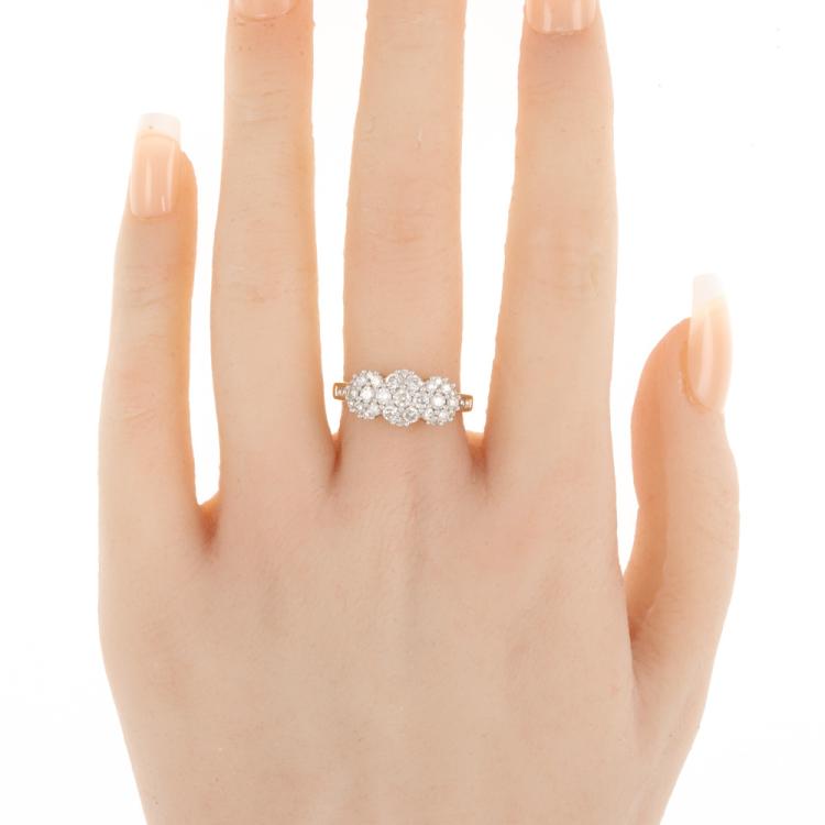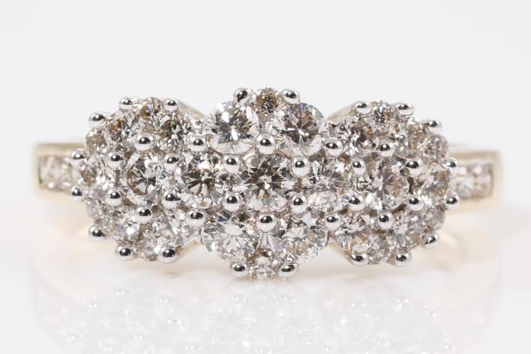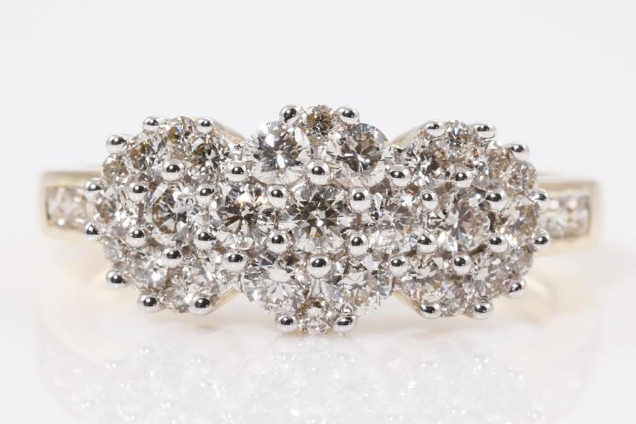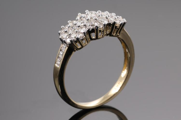 Diamond dress ring with 35 round Natural Diamonds totalling 0.90cts (Estimated grading: H SI). 14ct yellow and white gold. Size: M1/2. Weight: 4.0g. (New)