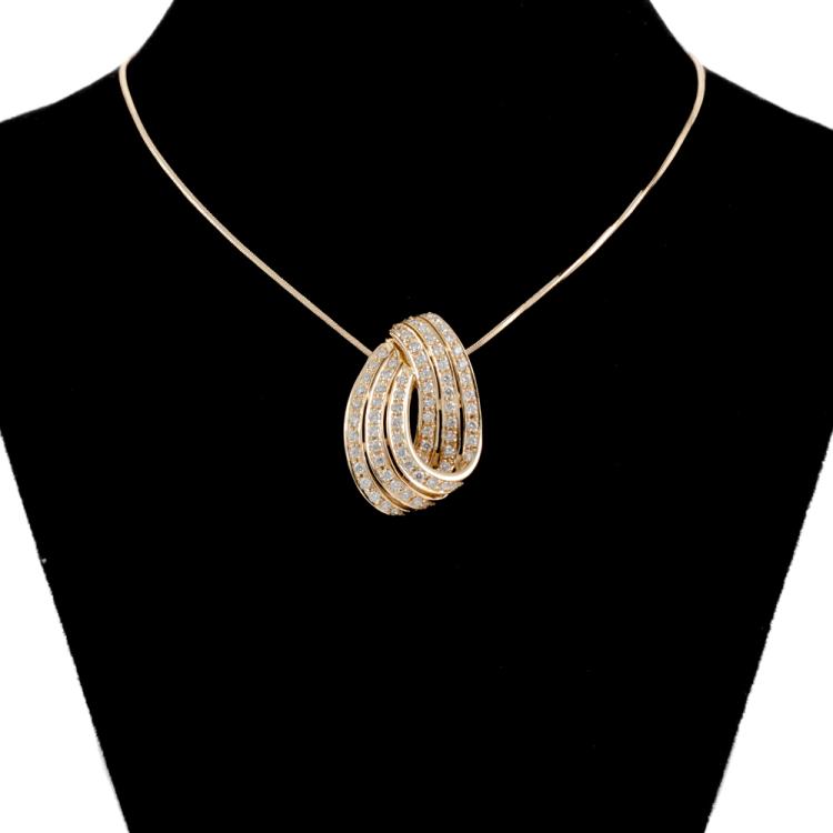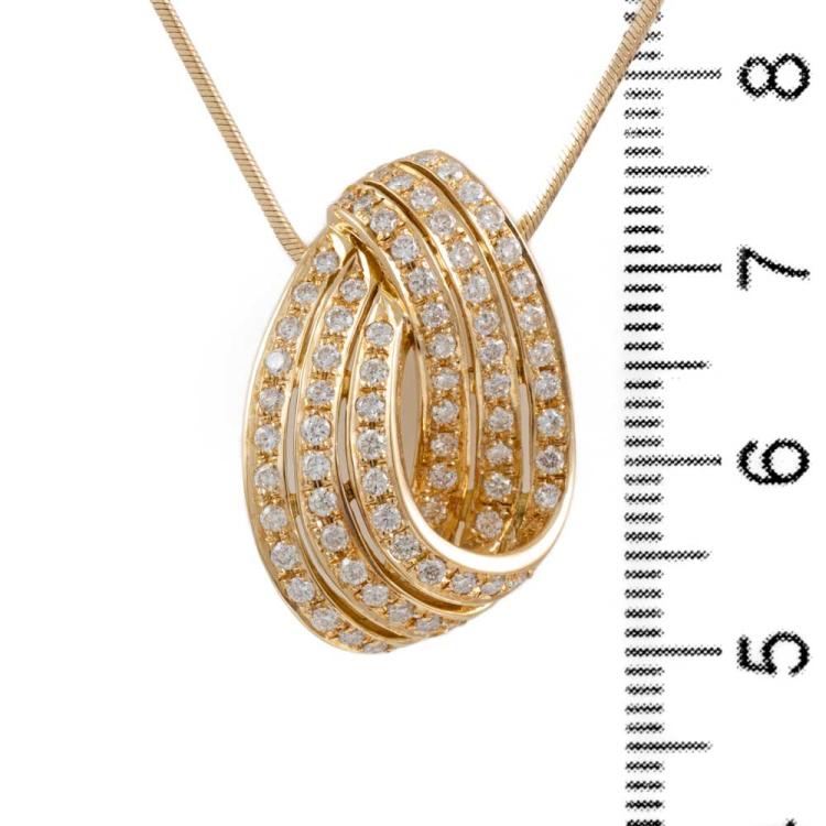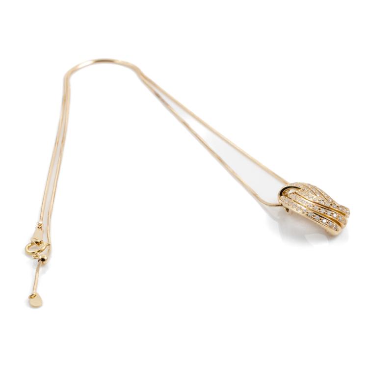Diamond pendant with round Natural Diamonds totalling 1.00cts (Estimated grading: H-I SI). 18ct yellow gold with 51cm adjustable 18ct yellow gold chain. Weight: 10.5g. (Pre-owned)