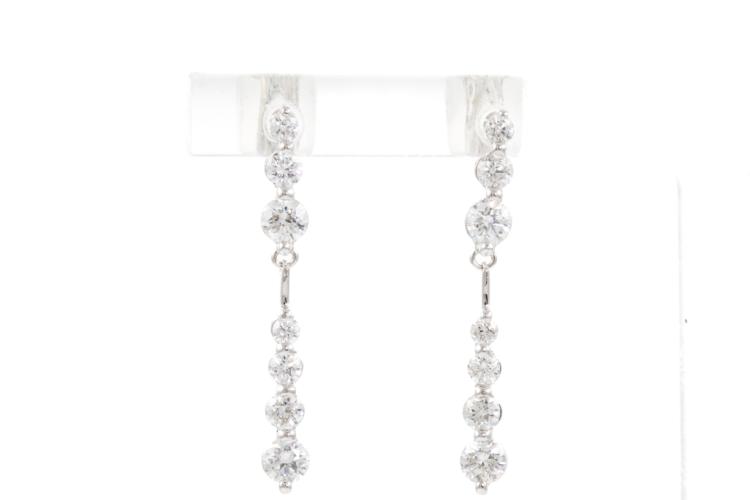 Diamond earrings with Natural Diamonds totalling 1.00cts (Estimated grading: G SI). Platinum - 900 with platinum & silicon backs. Length: 26.0mm. Weight: 3.0g. (Pre-owned)