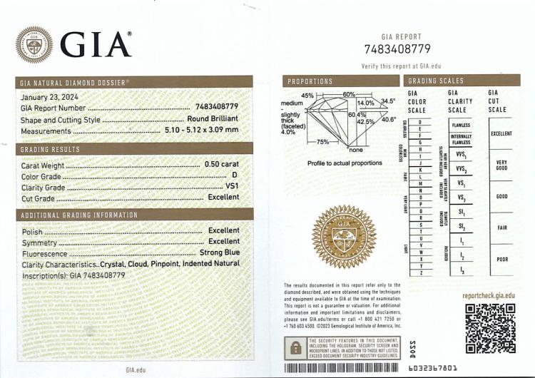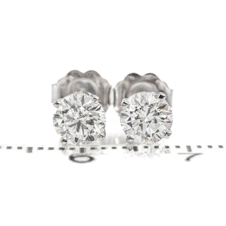 Diamond stud earrings with 2 round brilliant cut Natural Diamonds totalling 1.00cts (with GIA Summary Reports graded as D VS1 #7483408779, 7481427170). 18ct white gold. Weight: 1.3g. (New)