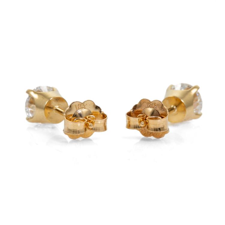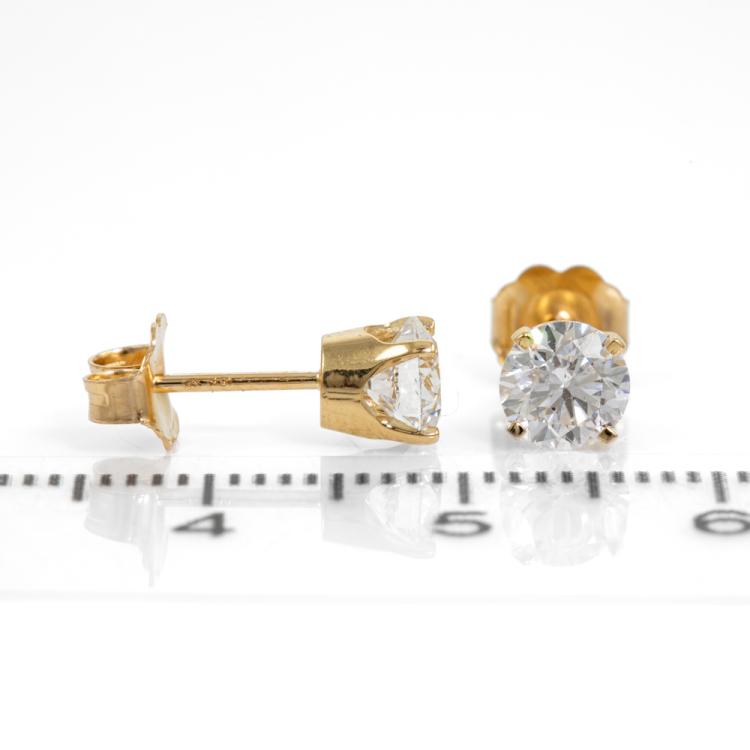 Diamond Studs with 2 round brilliant cut natural Diamonds totalling 1.09cts (with GIA Summary reports graded D SI1 #5486697012, 5433557613). 18ct yellow Weight 1.3g (New)