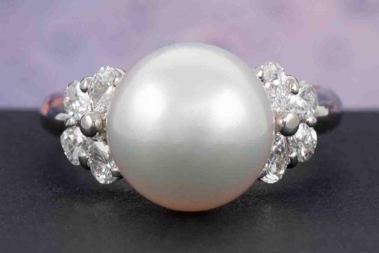 11.2mm South Sea Pearl and Diamond Ring