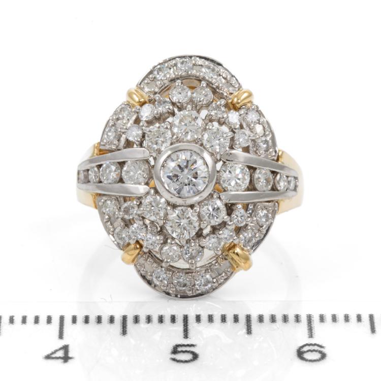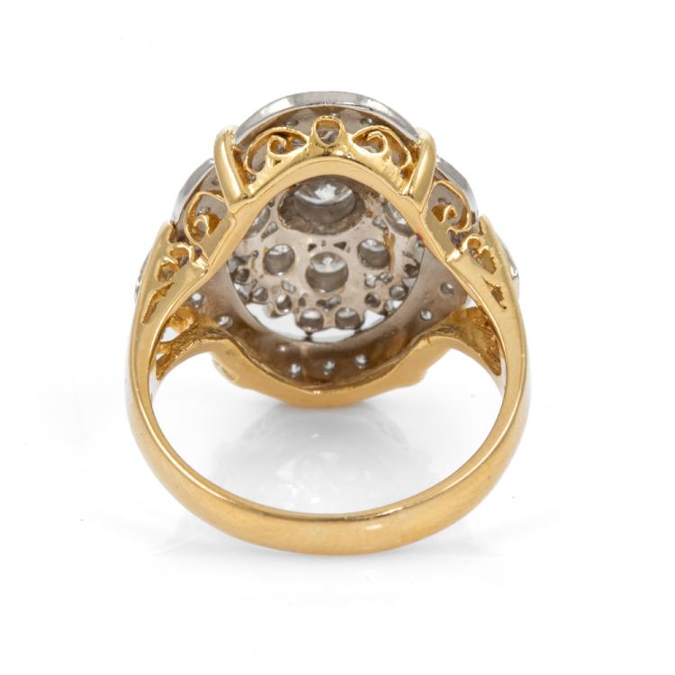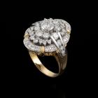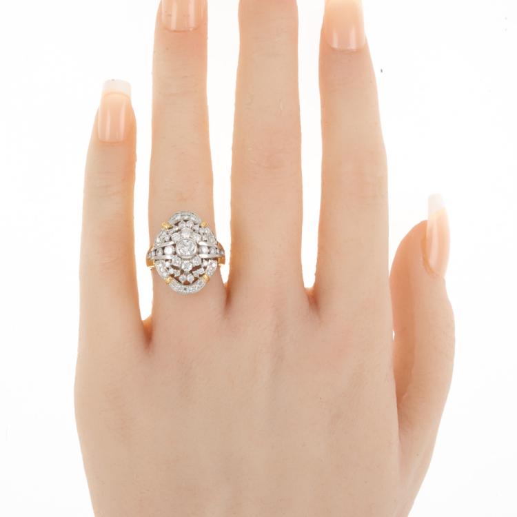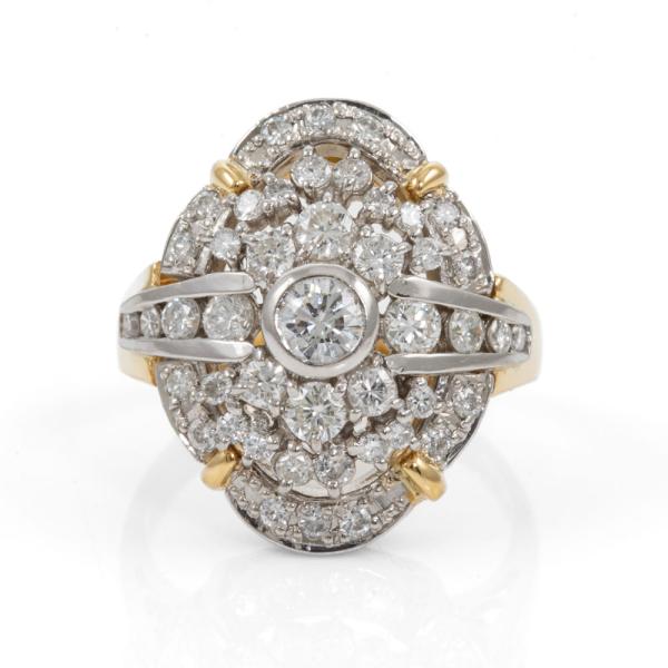 Diamond dress ring with round Natural Diamonds totalling 1.15cts (Estimated grading: G-H VS-SI). 18ct yellow gold and platinum 900. Ring size K. Band width: 2.5mm - 4.6mm. Weight: 8.1g. (Pre-owned)