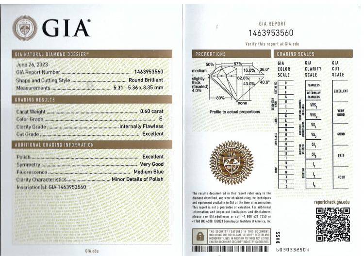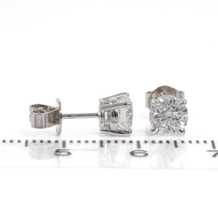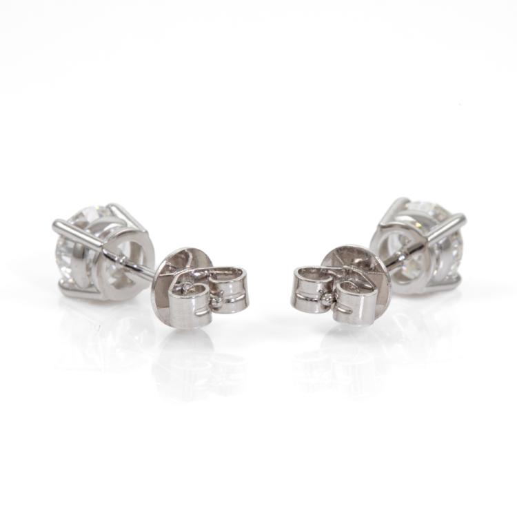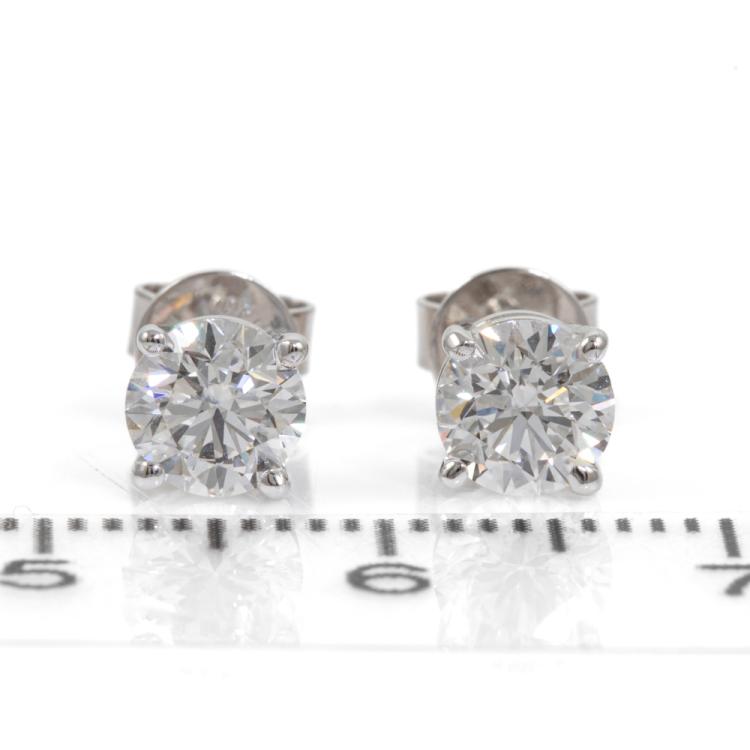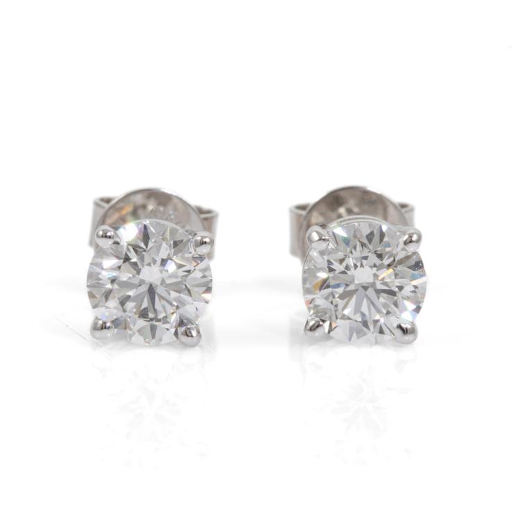 Diamond stud earrings with 2 round brilliant cut Natural Diamonds totalling 1.20cts (with GIA Summary Reports graded as E and F Internally Flawless #1463953560, 6455866946). 18ct white gold. Weight: 1.5g. (New)