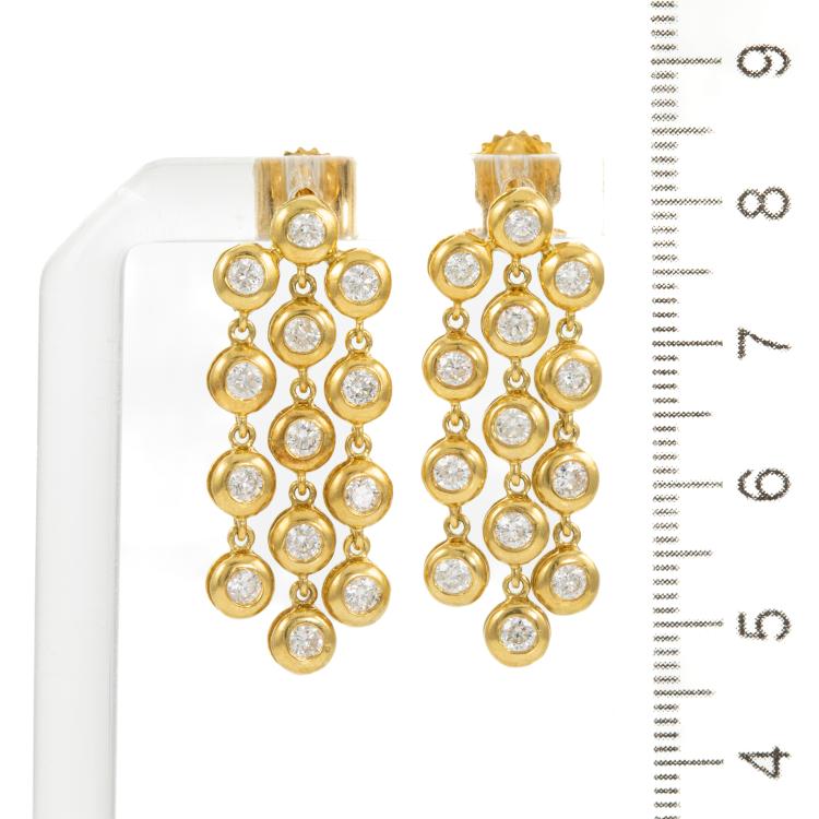 Diamond chandelier earrings with round Natural Diamonds totalling approximately 1.30cts (Estimated grading: H-I SI). 18ct yellow gold. Length: 35.0mm. Weight: 9.5g. (Pre-Owned)