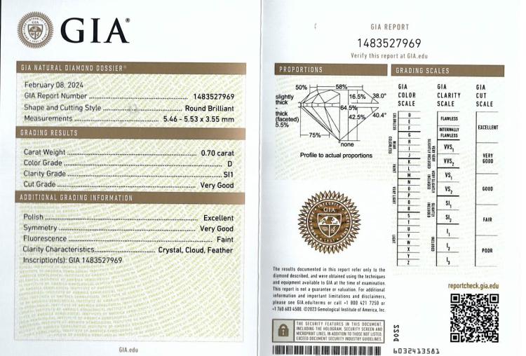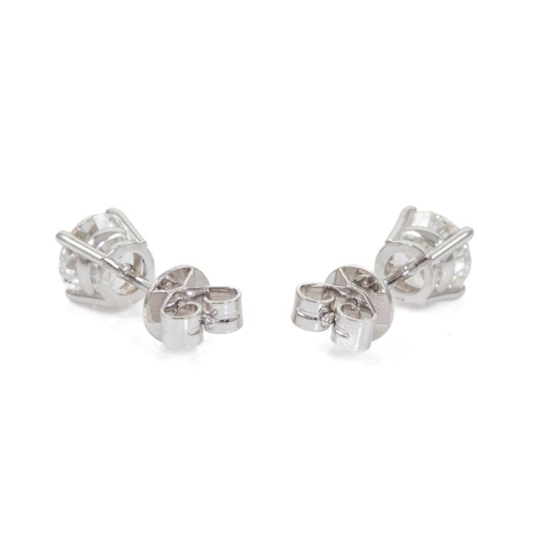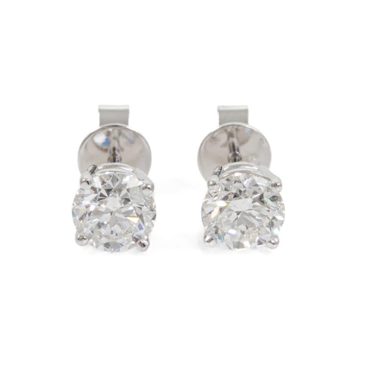 Diamond stud earrings with 2 round brilliant cut Natural Diamonds totalling 1.40cts (with GIA Summary Reports graded as D SI1 & E SI1 #1483527969, 6495067749). 18ct white gold. Weight: 1.4g. (New)