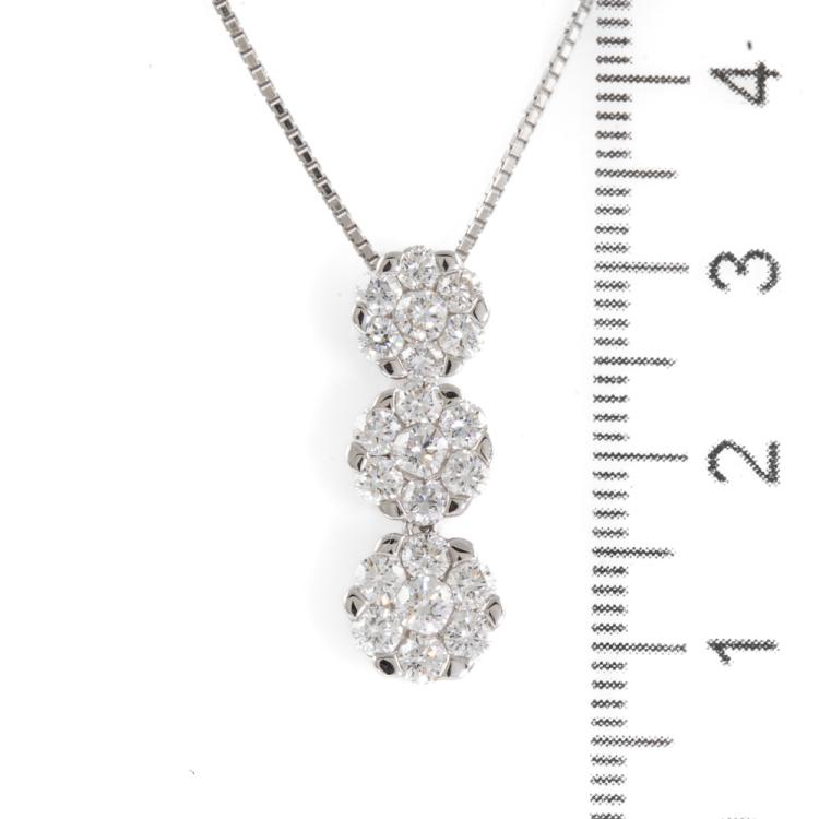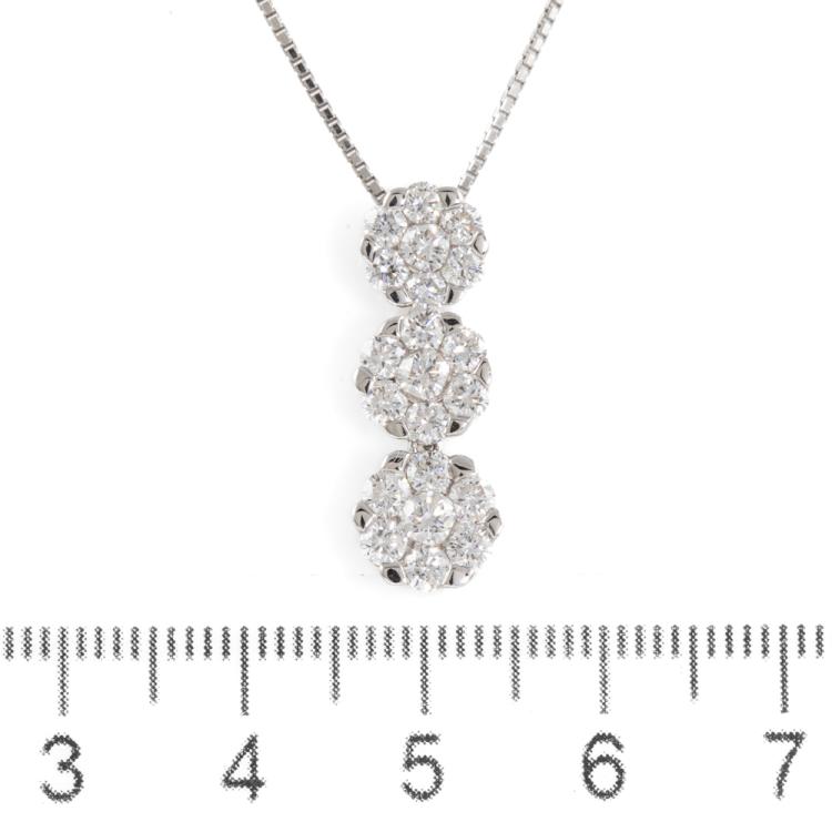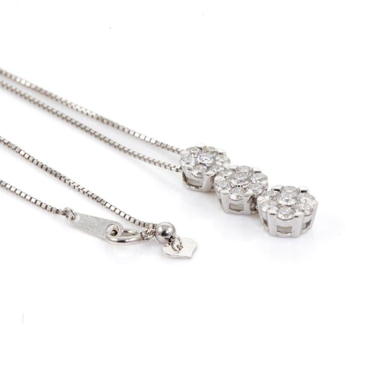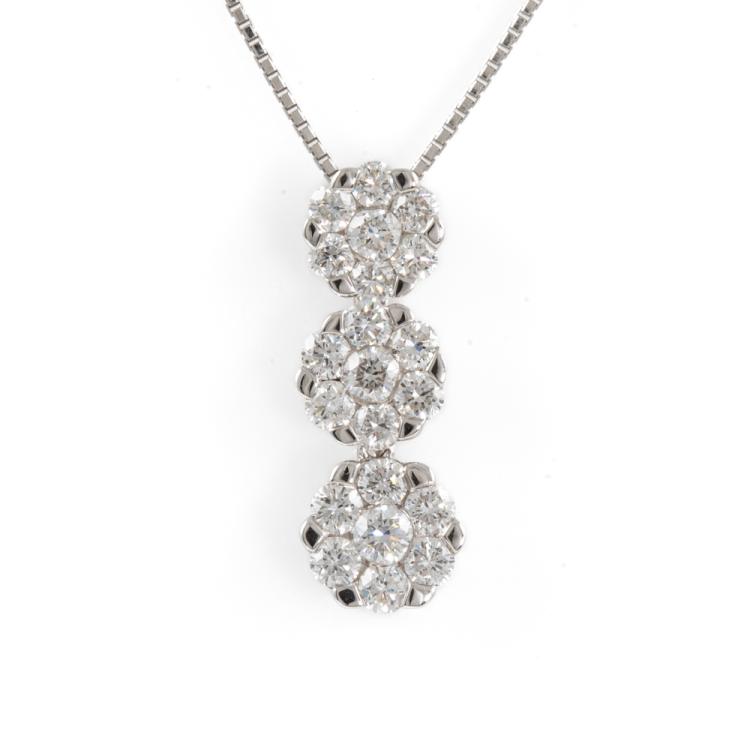 Diamond pendant with round Diamonds totalling 1.44cts (Estimated grading: H-I SI). 18ct white gold with 18ct white gold adjustable 44cm chain. Weight: 5.1g. (Pre-owned)