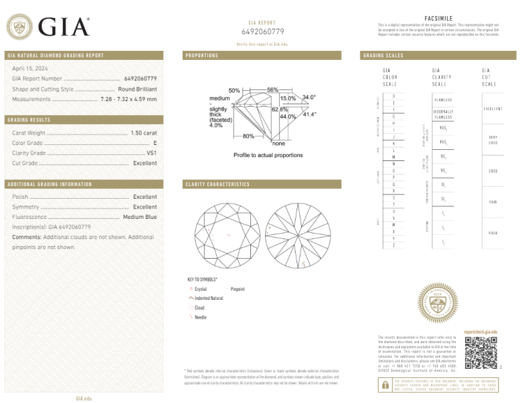 A loose round brilliant cut Natural Diamond of 1.50ct (with GIA report graded as E VS1 #6492060779). (New)