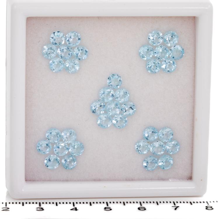 A loose parcel of 36 round Natural blue Topaz totalling 15.10ct. Measuring approximately 4.5mm. (As new)^