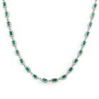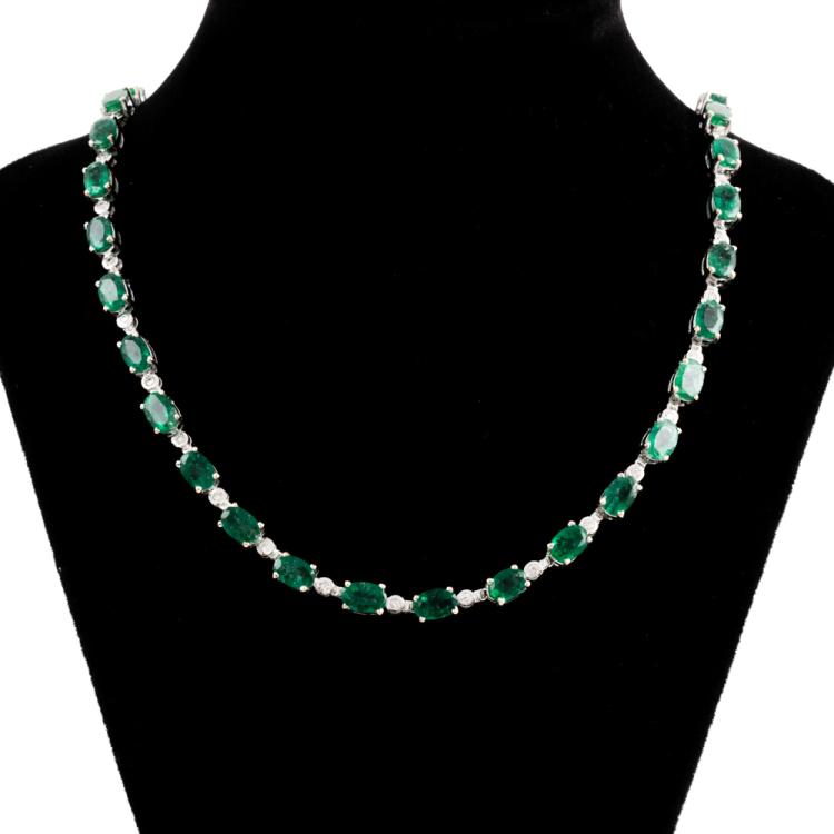 Emerald and Diamond necklace with oval shape Natural Emerald totalling 18.00cts and round Natural Diamonds totalling 0.25cts. 18ct white gold. Length: 41.5cm. Weight: 24.0g. With Certificate 418384. (Pre-owned)