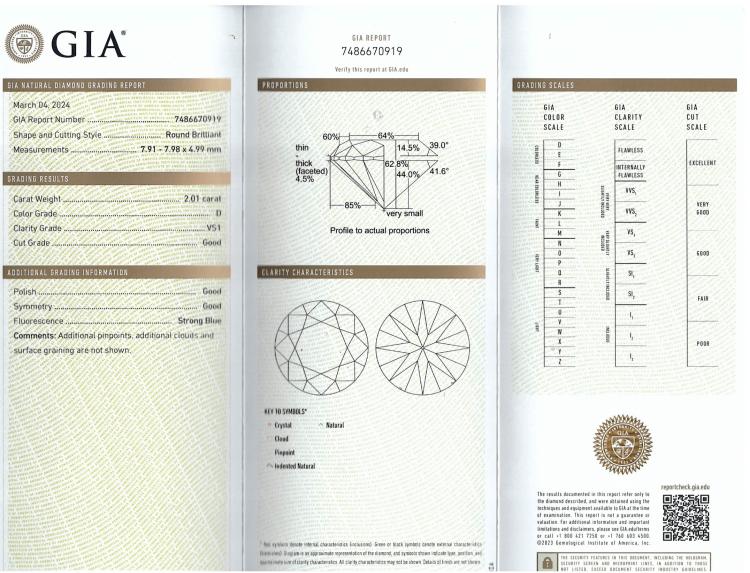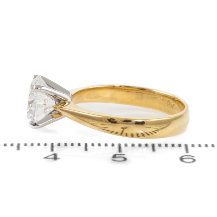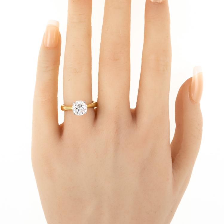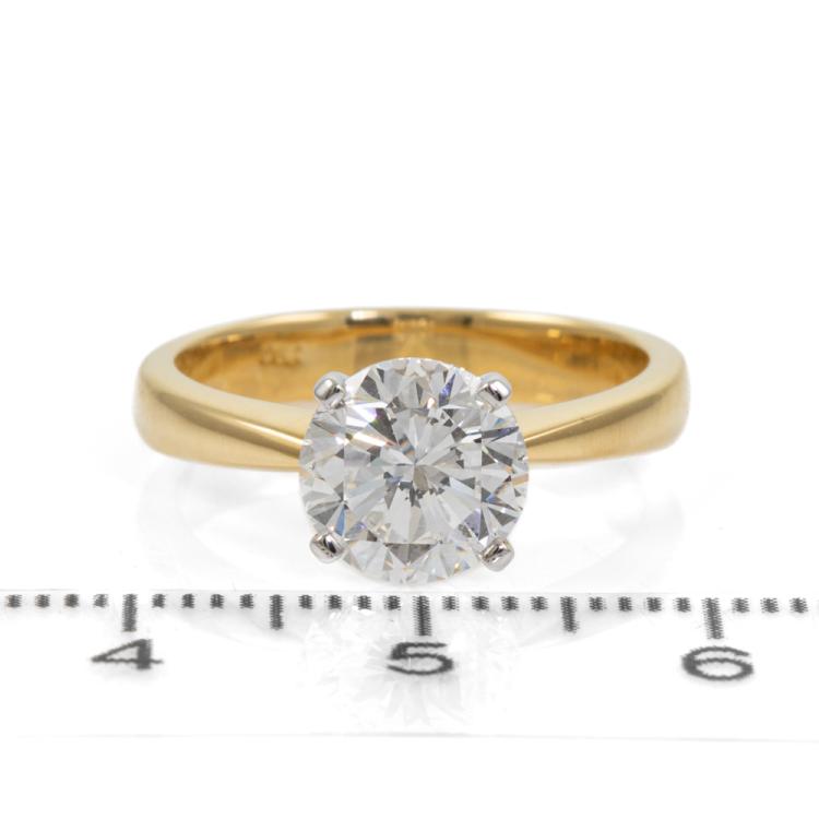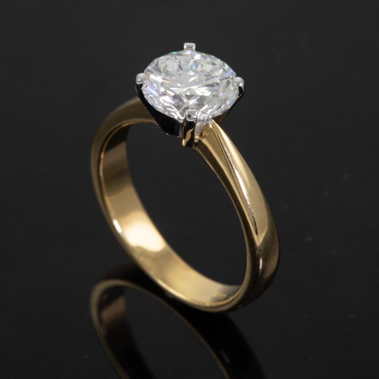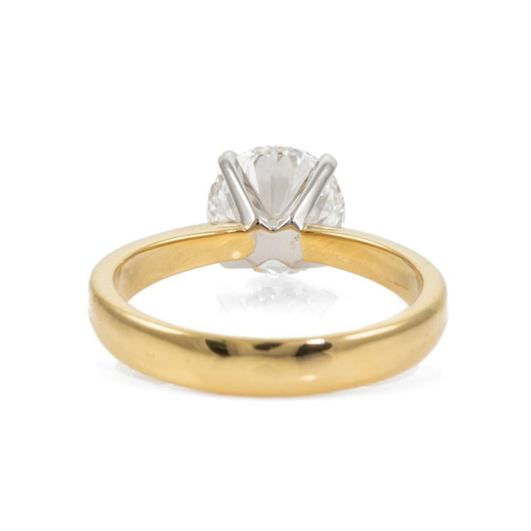 Diamond solitaire ring with round brilliant cut natural Diamond of 2.01ct (with GIA Report graded as D VS1 #7486670919). 18ct yellow and white gold. Ring size: L1/2. Band width: 3.3mm - 1.7mm. Weight: 4.6g. (New)
