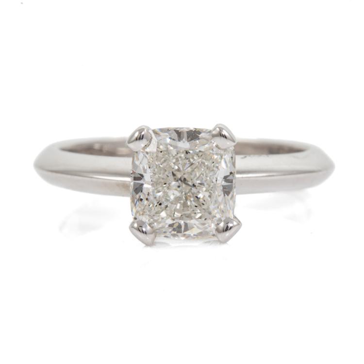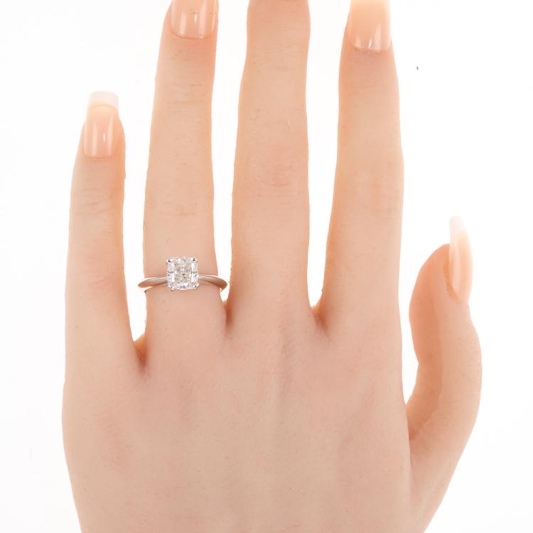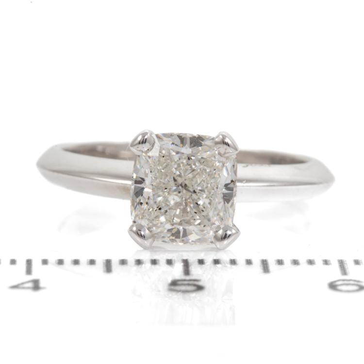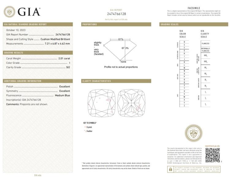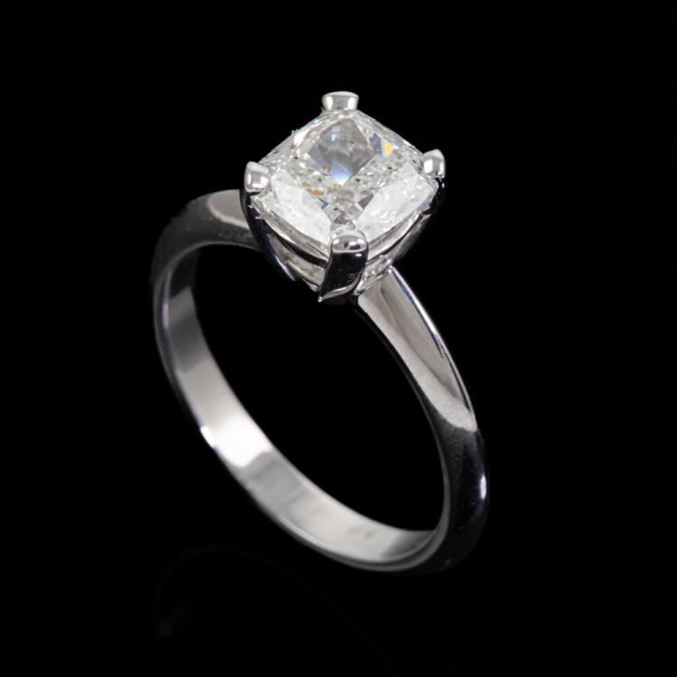 Diamond solitaire ring with a cushion cut Diamond of 2.01ct (with GIA Report graded as I SI2 #2474766128). 18ct white gold. Ring size L1/2. Band width 2.6mm. Weight: 4.6g. (New)