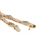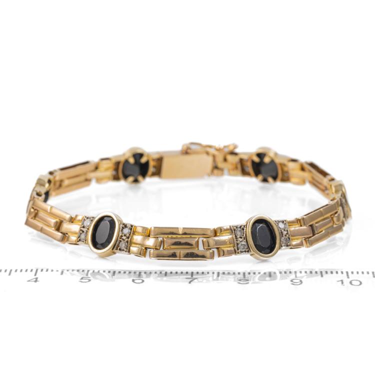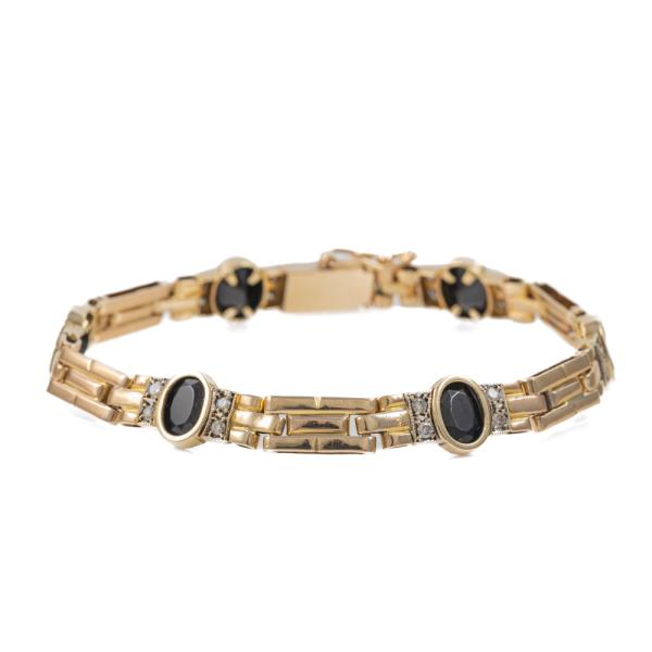 Onyx and Diamond bracelet with 6 oval natural Onyx totalling approximately 4.50cts and round natural Diamonds totalling approximately 0.48cts (Estimated grading: H-I SI-P1). 14ct yellow gold. Length: 20cm. Weight: 18.1g. (Pre-owned)