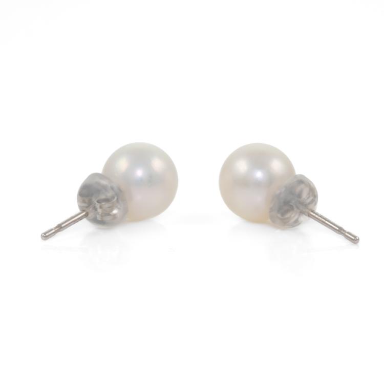 Pearl Stud Earrings with Akoya Pearls of 7.9mm. Platinum 900 with silicon & platinum 900 backs. Weight: 2.0g. (Pre-owned)