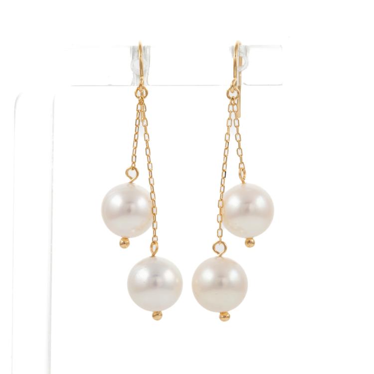 Pearl shepherd hook earrings with 4 Akoya Pearls of 8.2mm. 18ct yellow gold. Weight: 3.8g. (Pre-owned).