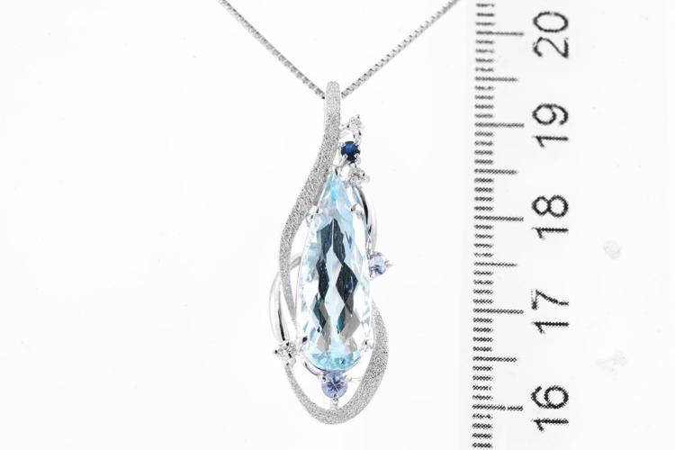 Aquamarine, Sapphire & Diamond Pendant