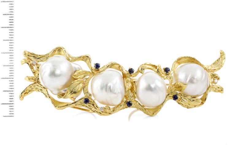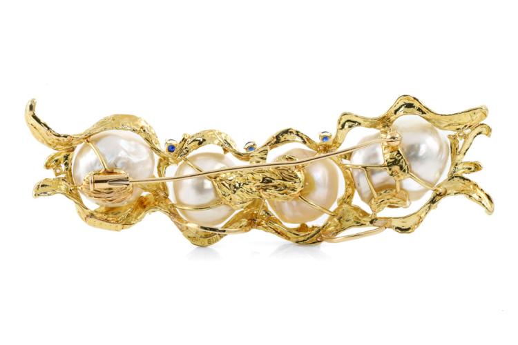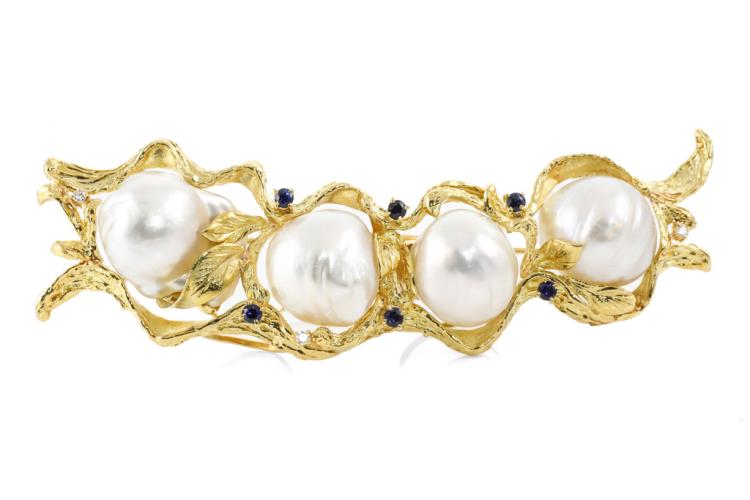 Baroque Pearl, Sapphire & Diamond Brooch