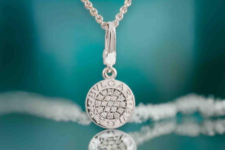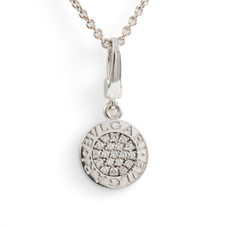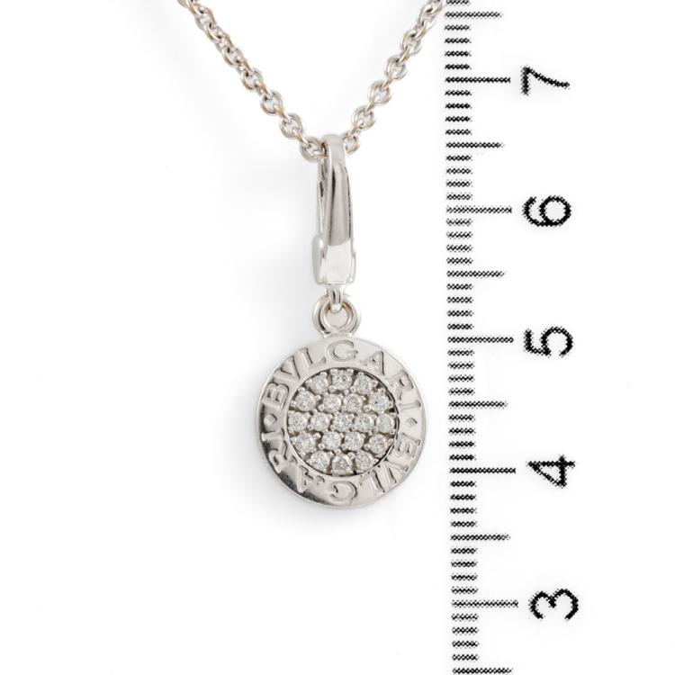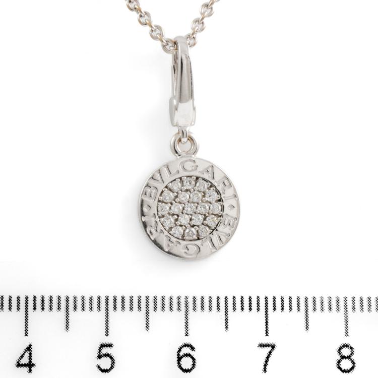 Bvlgari Bvlgari Diamond Necklace with pave set natural Diamonds totalling approximately 0.19cts. Motif size: 1.7cm. 18ct white gold with Bvlgari 40.5cm 18ct white gold chain. Weight: 9.5g. (Pre-owned)