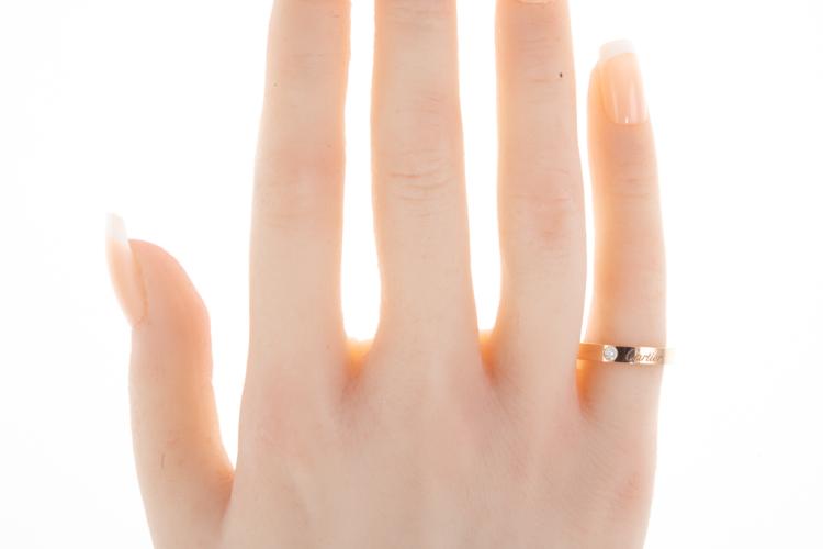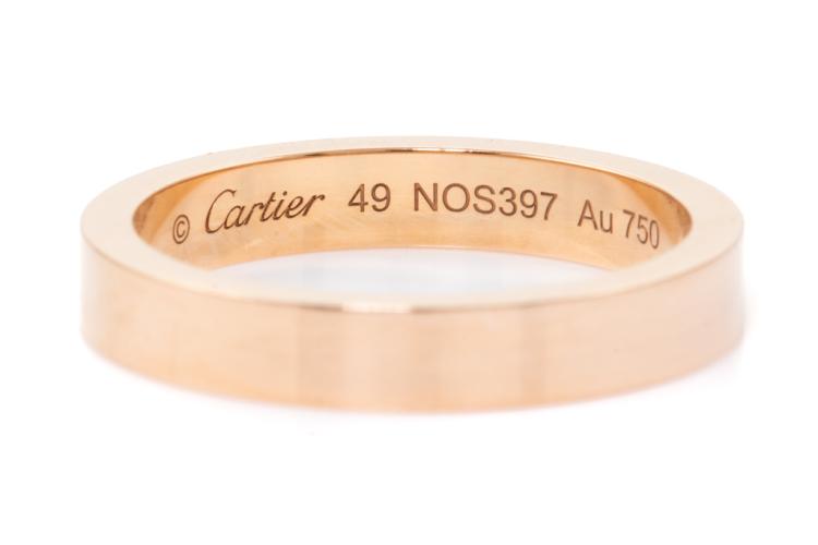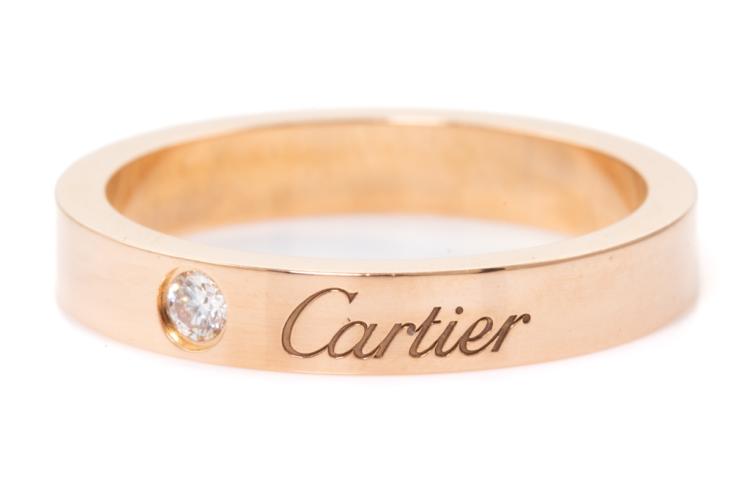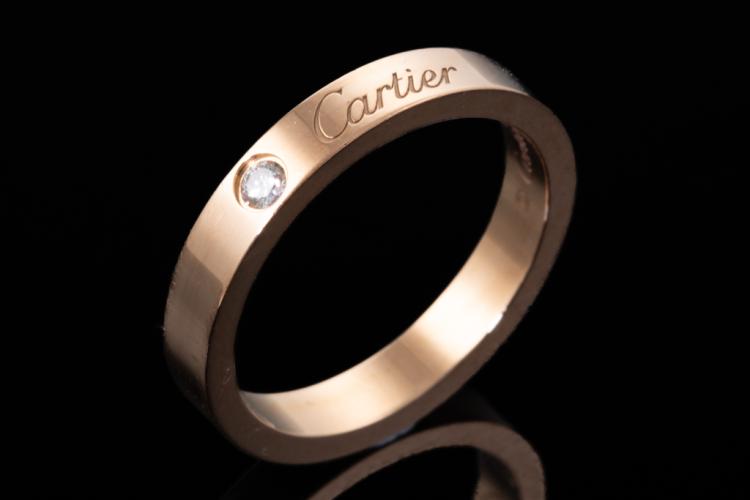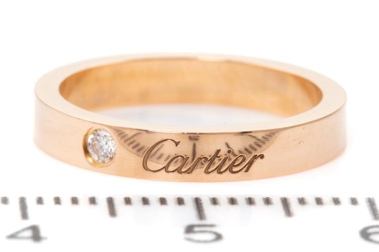 Cartier Diamond wedding ring with a round Natural Diamond of 0.03ct. 18ct rose gold. Stamped size 49, J1/2 - ring resizing is not recommended. Weight: 3.6g. With Cartier box. (Pre-owned)