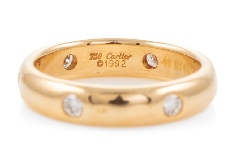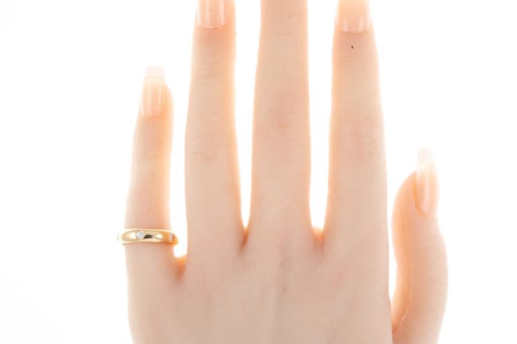 Cartier Stella Diamond ring with round Natural Diamond totalling 0.24ct. 18ct yellow gold. Cartier stamped size 49, note actual size is I - due to being resized. Band width: 4.0mm. Weight: 4.8g. (Pre-owned)