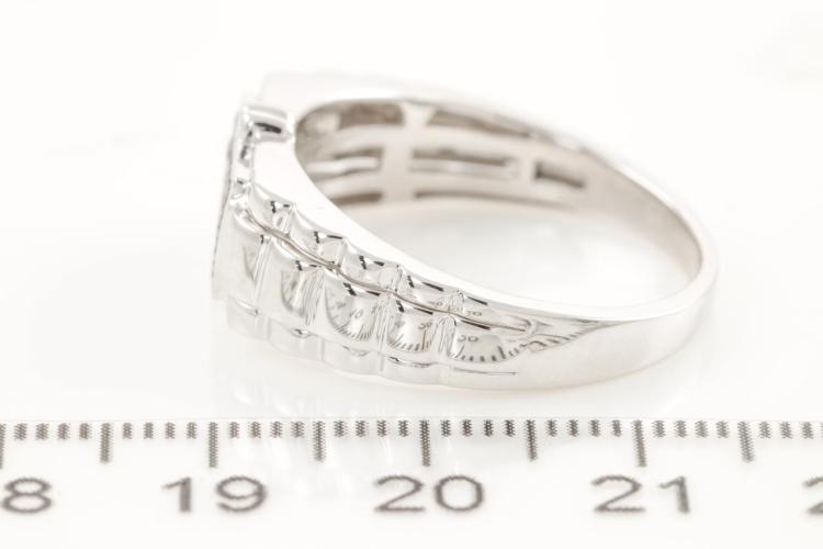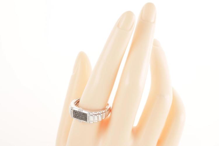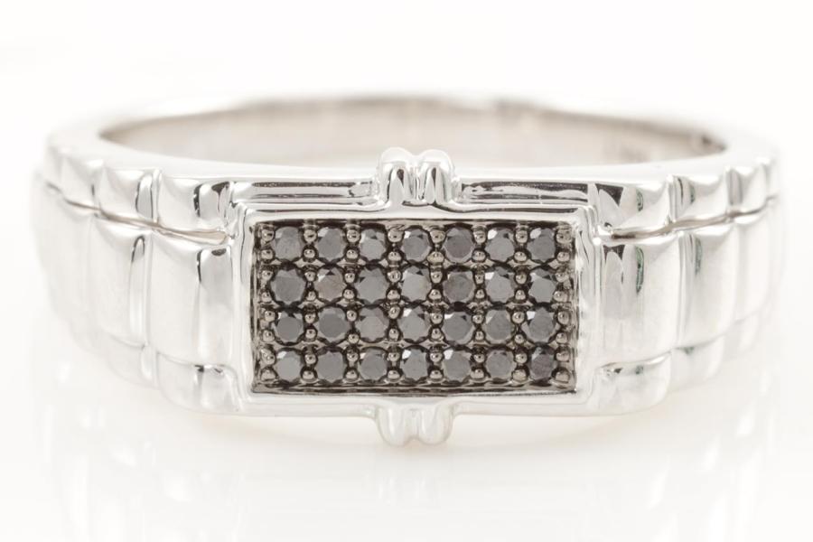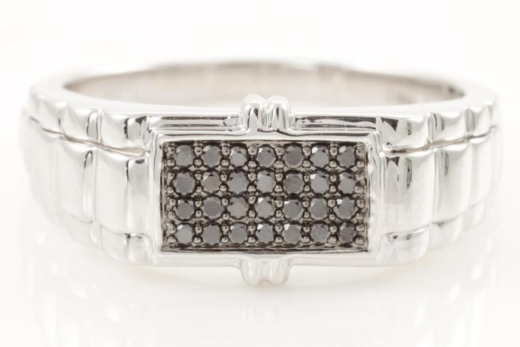 Mens ring with 28 black Natural Diamonds totalling 0.25cts (Colour may be treated). 14ct white gold. Ring size V - ring resizing is not recommended. Weight: 5.9g. (New)