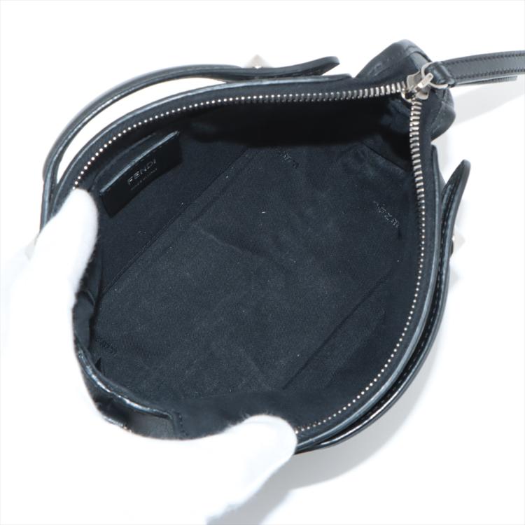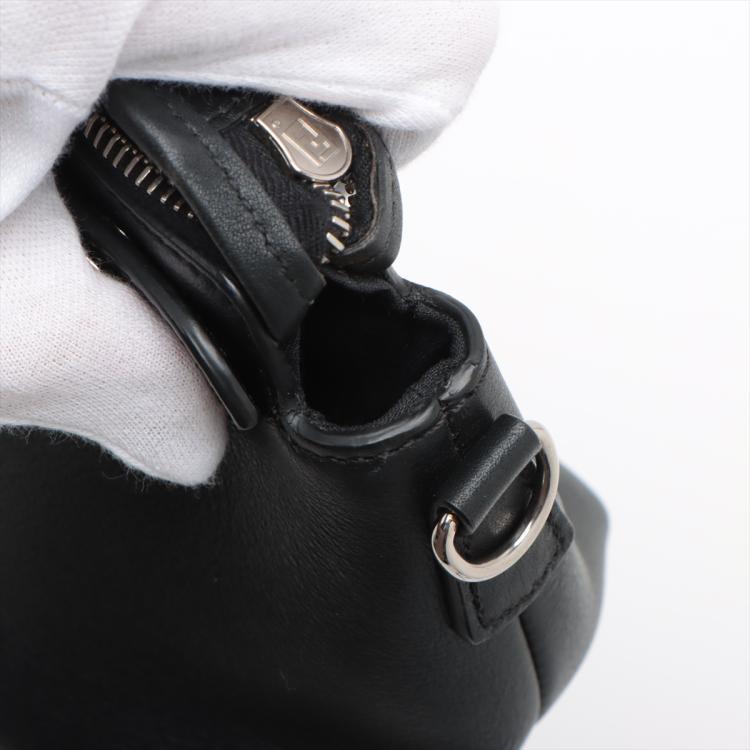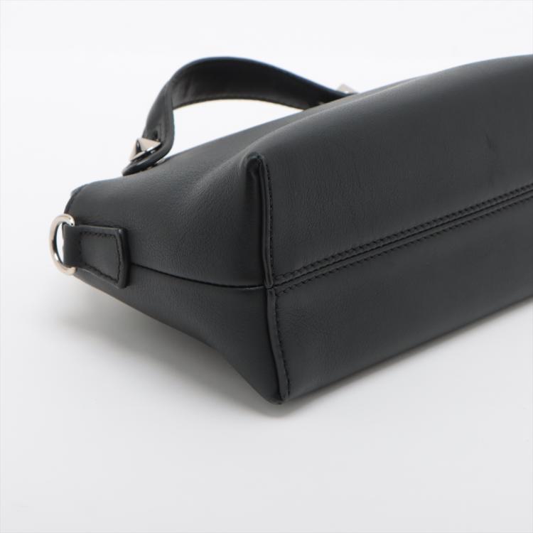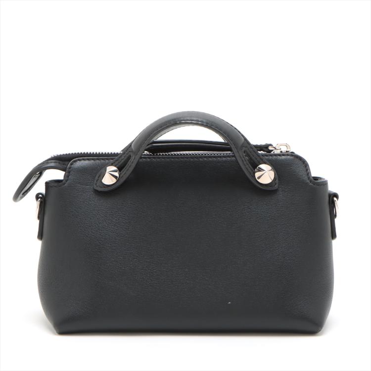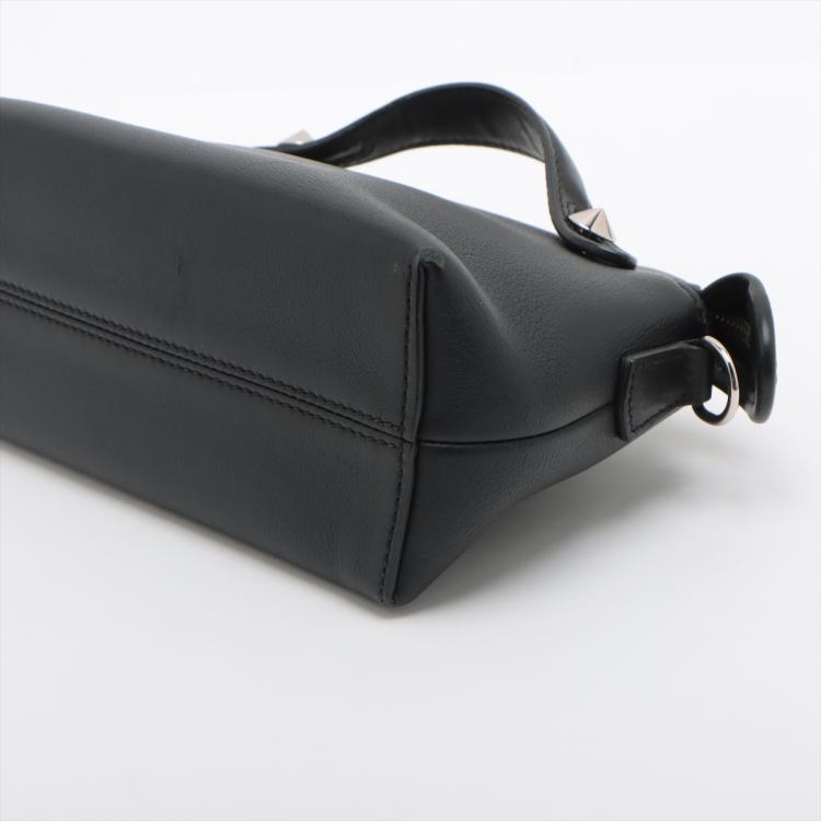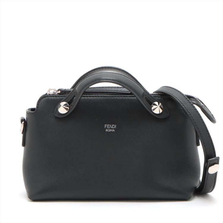 Fendi mini By The Way boston bag in black leather. Featuring silver-toned hardware, top leather handles with silver studs details. The top zipper closure opens to a black fabric interior with a patched pocket. Approximate dimensions: 20cm(L) x 13cm(H) x 8.5cm(D), 3.5cm handle drop and 54cm detachable should strap. Accompanied by a Fendi dust bag. (Note: leather tag NOT included). With Entrupy Certificate of Authenticity. (Pre-owned)