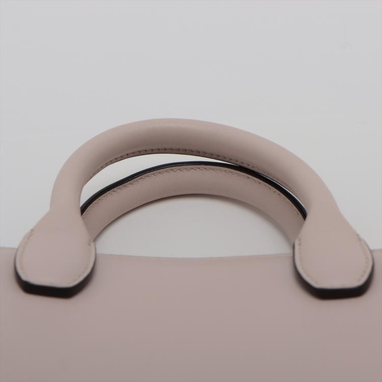 Ferragamo small Studio Box bag in light pink calfskin leather. Featuring dual leather handles, an adjustable and detachable strap, gold-toned hardware, protective studs at bottom. The flip-lock closure opens to a matching leather interior with two flat pockets. Approximate dimensions: 20.5cm(L) x 17cm(H) x 9.5cm(D), handle drop 7.5cm, shoulder drop 57.5cm. Accompanied by a Salvatore Ferragamo dustbag. With Entrupy Certificate of Authenticity. (Pre-owned)