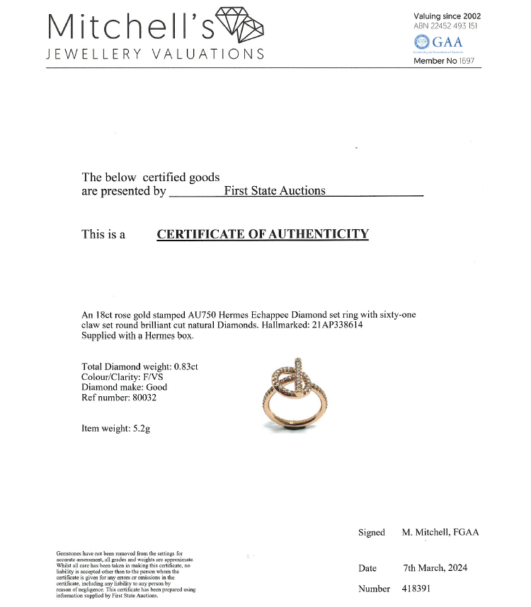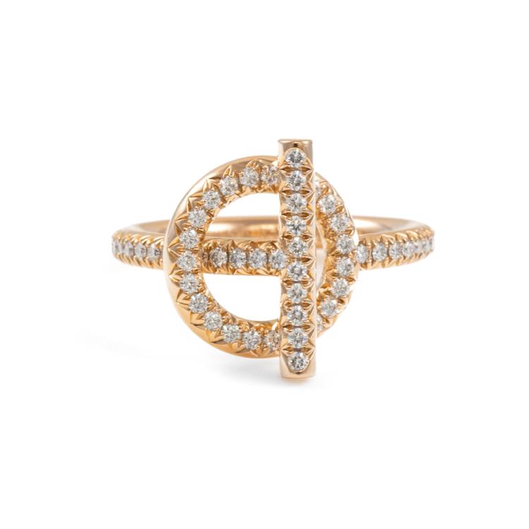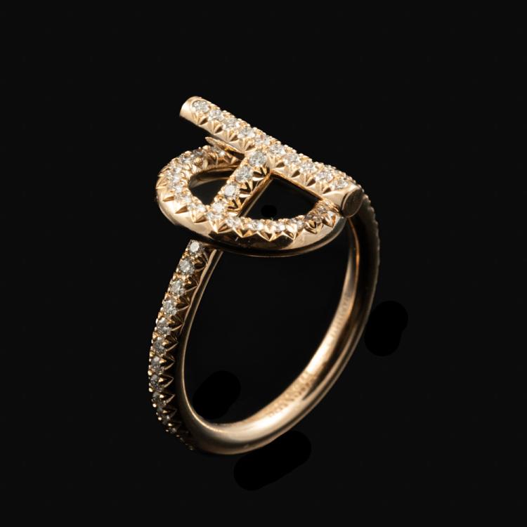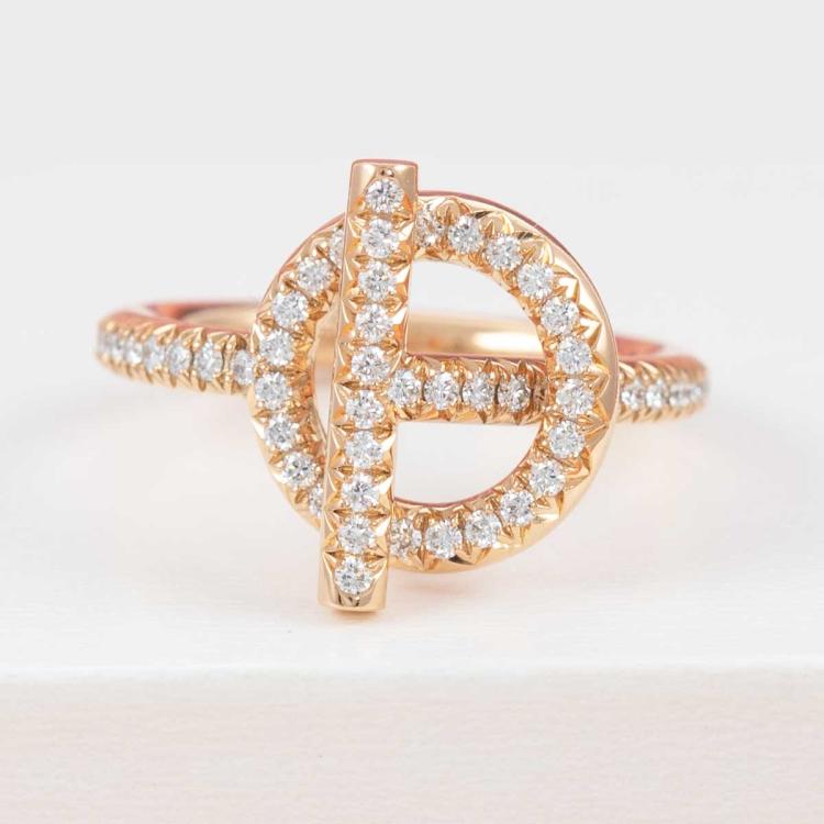 Hermes Echappee Diamond ring with round Natural Diamonds totalling 0.83cts. 18ct rose gold. Stamped size 50, - ring resizing is not recommended. Weight: 5.2g. With Hermes box. With Certificate #418391 (Pre-owned)