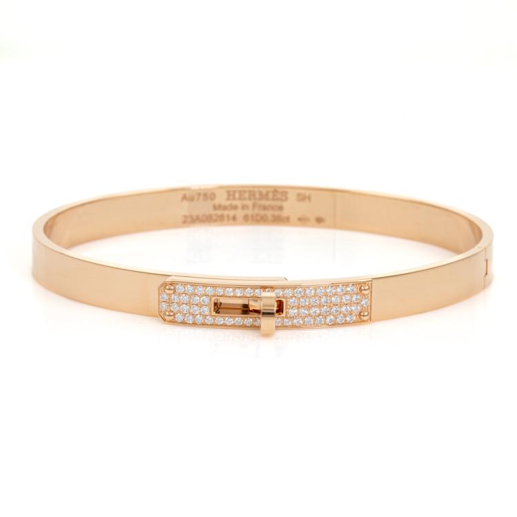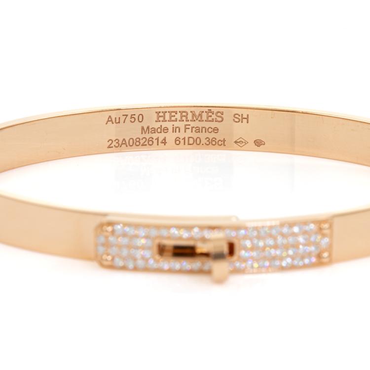 Hermes Kelly Diamond bracelet small model with round natural Diamonds totalling 0.36cts (Estimated grading: F VS). 18ct rose gold. Inner circumference: 15.8cm. Weight: 23.7g. With Hermes box. With Certificate 418510. (Pre-owned)