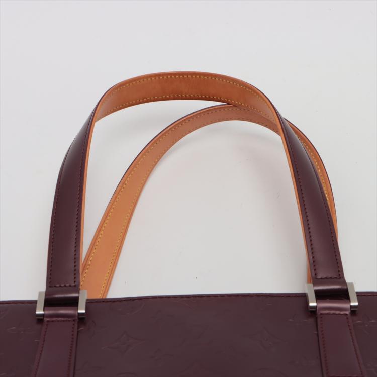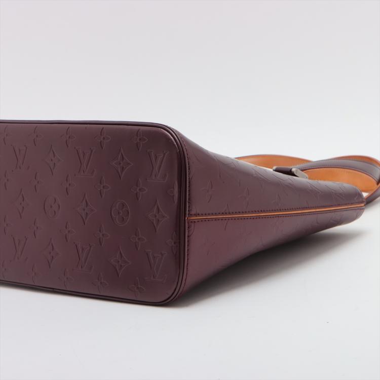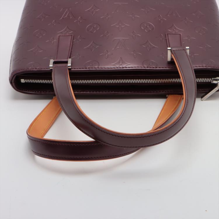 Louis Vuitton stockton tote bag in Mat Monogram leather in Bordeaux colour. Featuring silver tone hardware, rolled handles. The top zip closure opens to a colour matching textile lining interior with side zip, cell phone and slip pockets. Approximate dimensions: 29.5cm(L) x 25.5cm(H) x 14cm(D), and 20.5cm handle drop. With Entrupy Certificate of Authenticity. (Pre-owned)