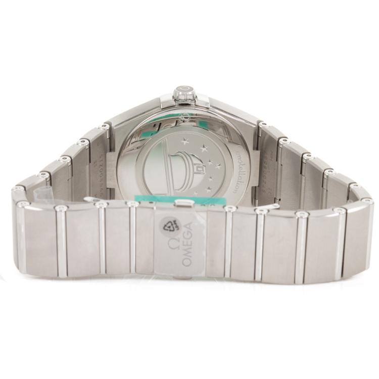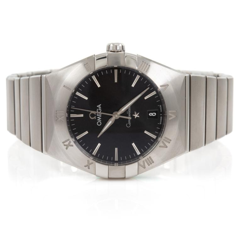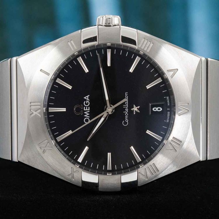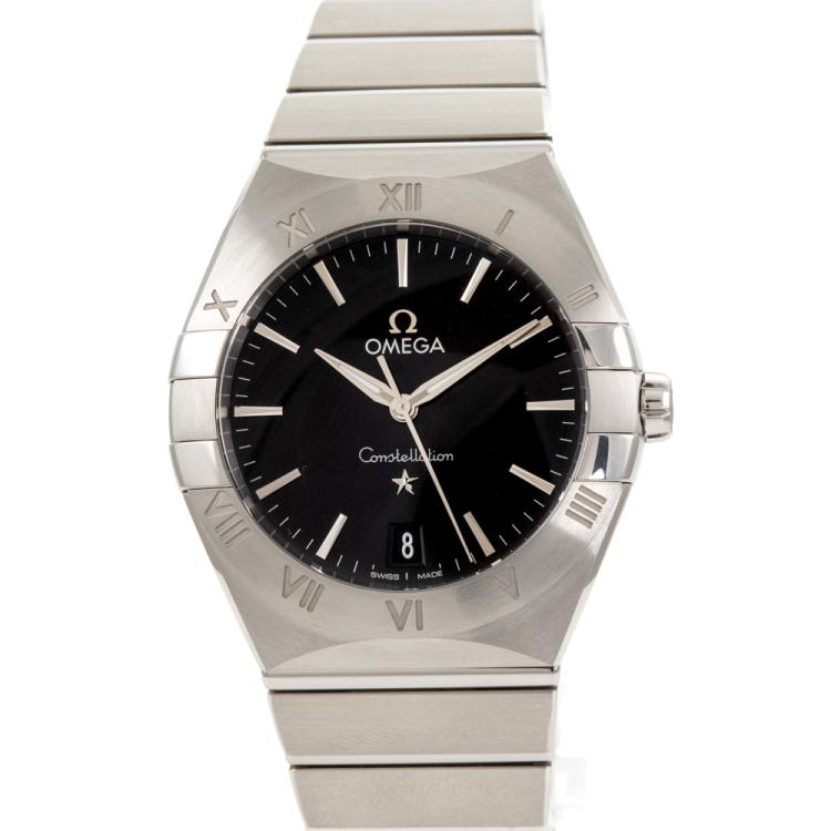 Omega Constellation stainless steel quartz watch. Black dial, date, case diameter: 36mm, wrist size: 19cm, Swiss made. Ref# 131.10.36.60.01.001. With Omega stainless steel and clasp. With Certificate of Authenticity, Omega International Warranty Card dated 29/02/2024, Omega Pictograms card and Omega box. Balance of 5 year Omega manufacturer warranty applies. (Pre-Owned)