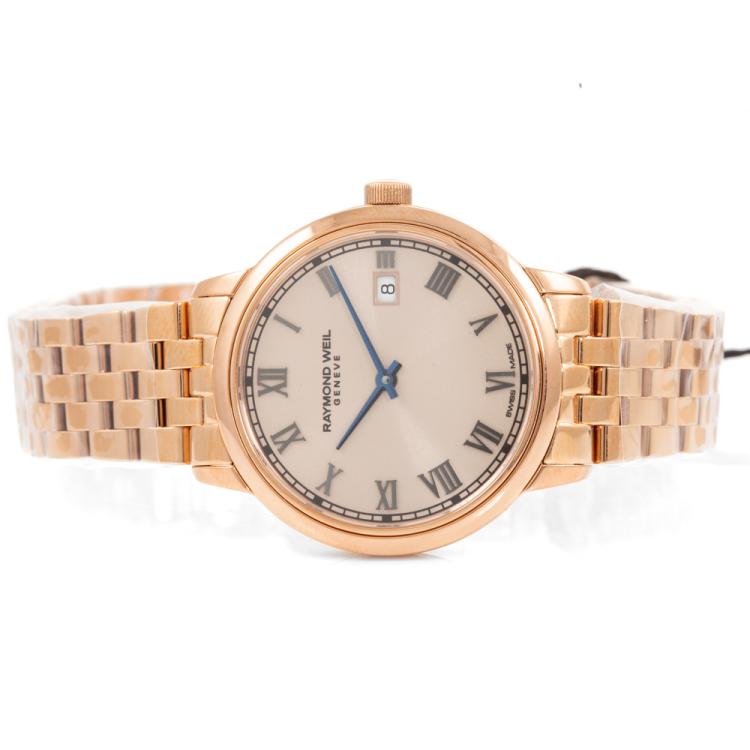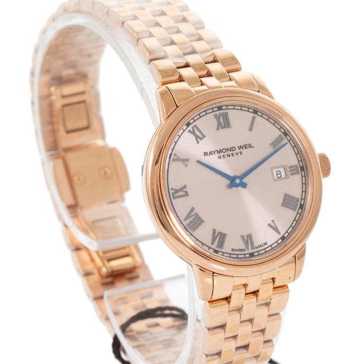 Raymond Weil Toccata rose gold PVD plated and stainless steel quartz ladies watch. Rose gold dial, date, case diameter: 29mm, wrist size: 17.5cm, Swiss made. Ref# 5985-P5-00859. With Raymond Weil rose gold PVD plated bracelet and clasp. With Raymond Weil Guarantee card and Raymond Weil box. 12 month FSA warranty (As new, Note: case and bracelet on original wrapping)