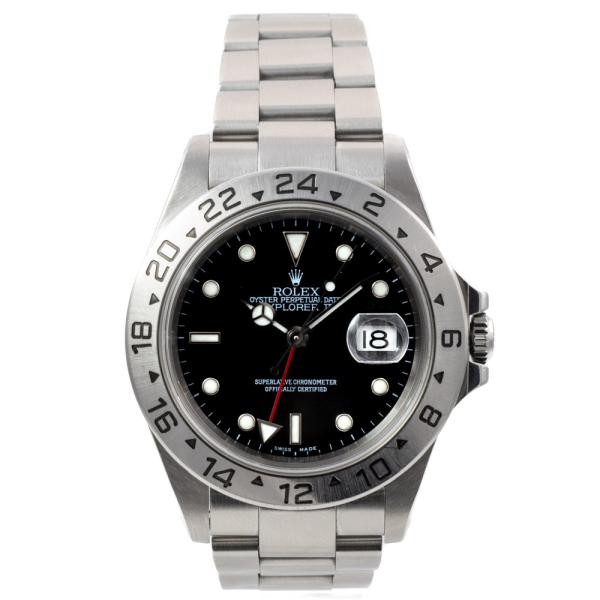 Rolex Oyster Perpetual Explorer II stainless steel automatic mens watch. Black dial, date, case diameter: 40mm, wrist size: 19cm, Swiss made. Ref# 16570. Circa: 2000. With Rolex stainless steel Oyster bracelet and clasp. With Certificate of Authenticity, Rolex Guarantee Certificate dated 29/07/2001 and Rolex box. 3 month FSA warranty (Pre-owned)