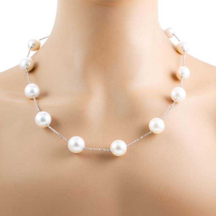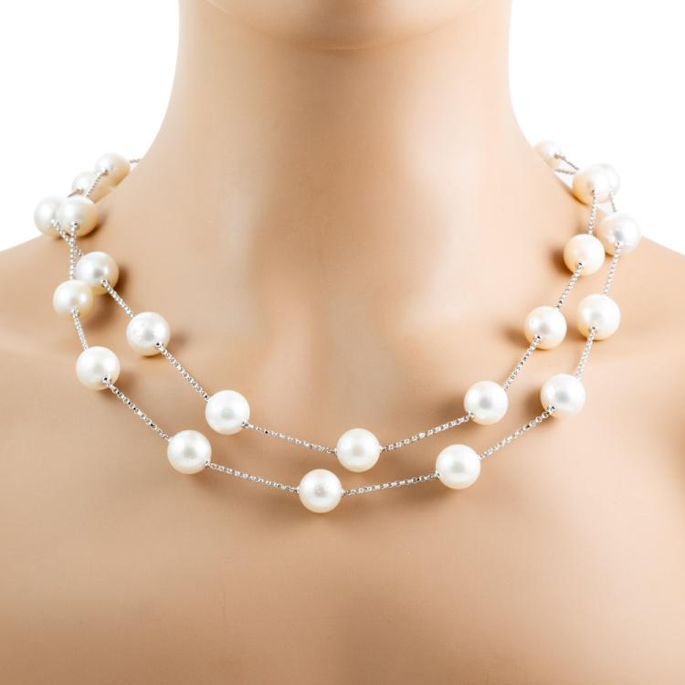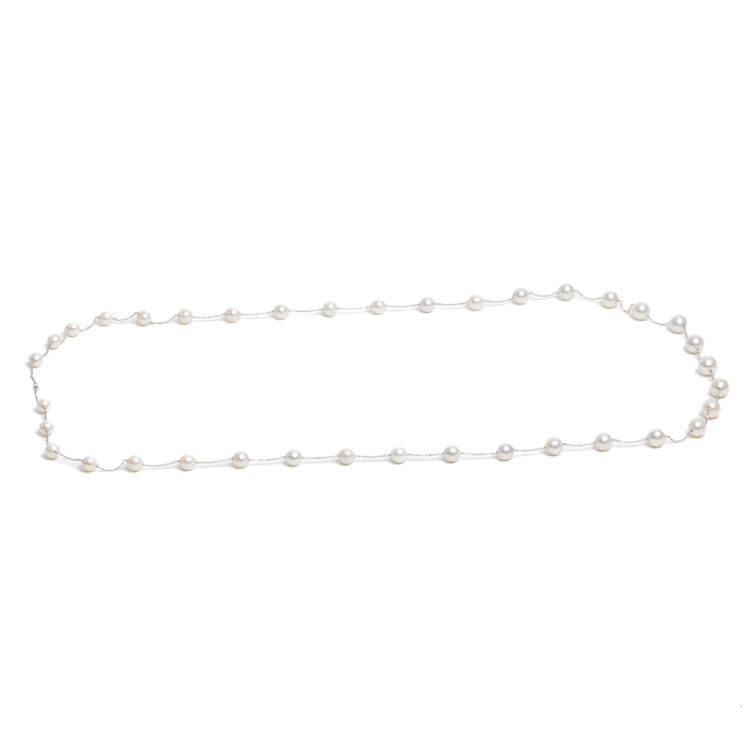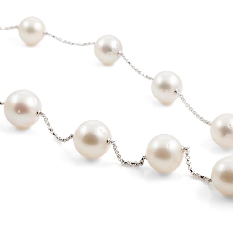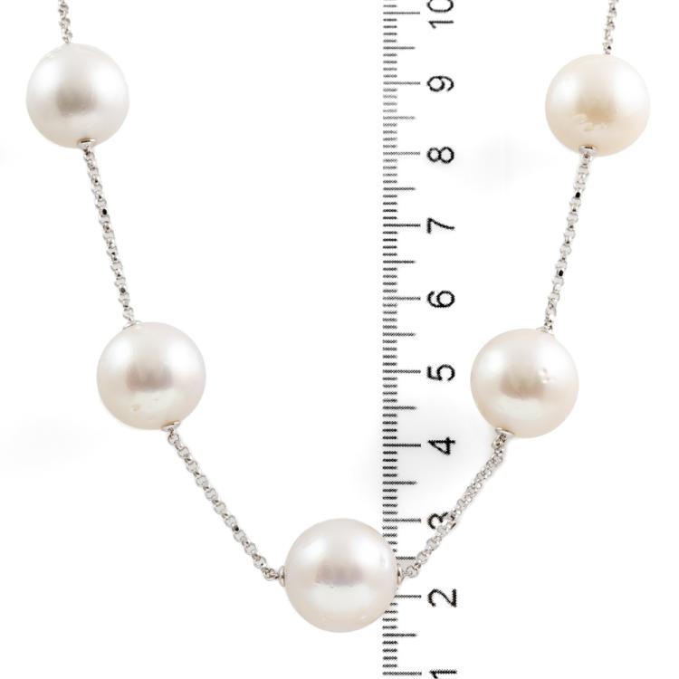 Pearl rope necklace with graduated white South Sea pearls of 14.4mm-11.0mm. 18ct white gold. Length: 142cm. Weight: 111.4g. (Pre-owned)
