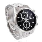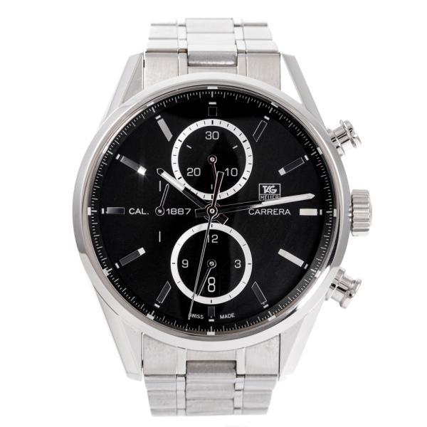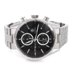 TAG Heuer Carrera stainless steel automatic mens watch. Black chronograph dial, date, case diameter: 41mm, wrist size: 17cm, Swiss made. Ref# CAR2110. With TAG Heuer stainless steel bracelet and clasp. With Tag Warranty Certificate of Authenticity and TAG Heuer box. 3 month FSA warranty. (Pre-owned)