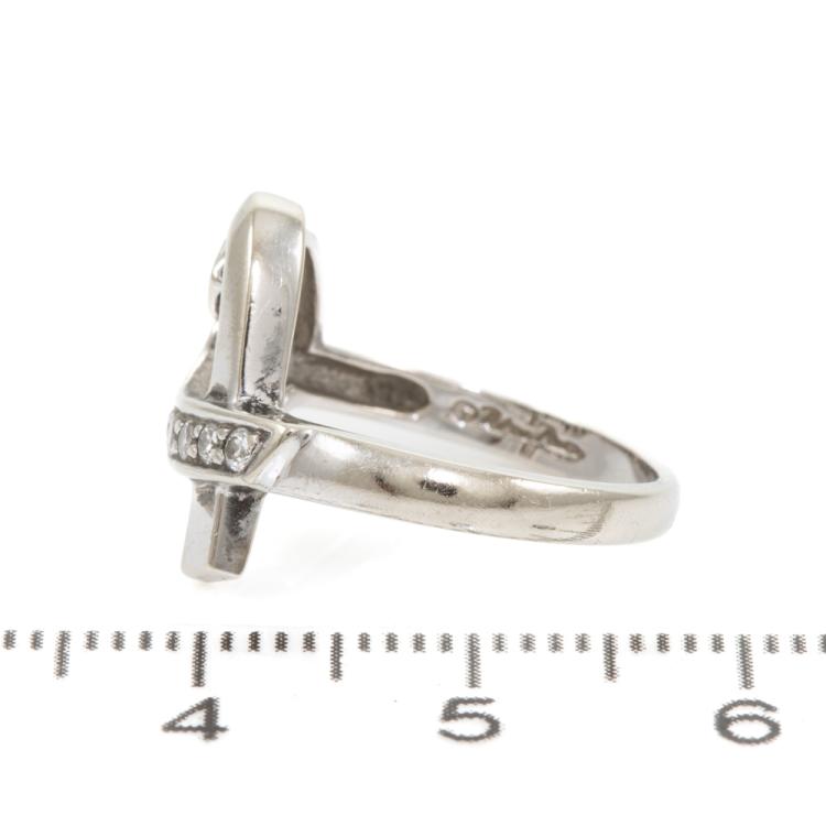 Tiffany & Co. Paloma Picasso Loving Heart Diamond ring with round natural Diamonds totalling approximately 0.10cts. 18ct white gold. Ring size L, - ring resizing is not recommended. Band width: 2.1mm - 2.8mm. Weight: 4.1g. (Pre-owned)