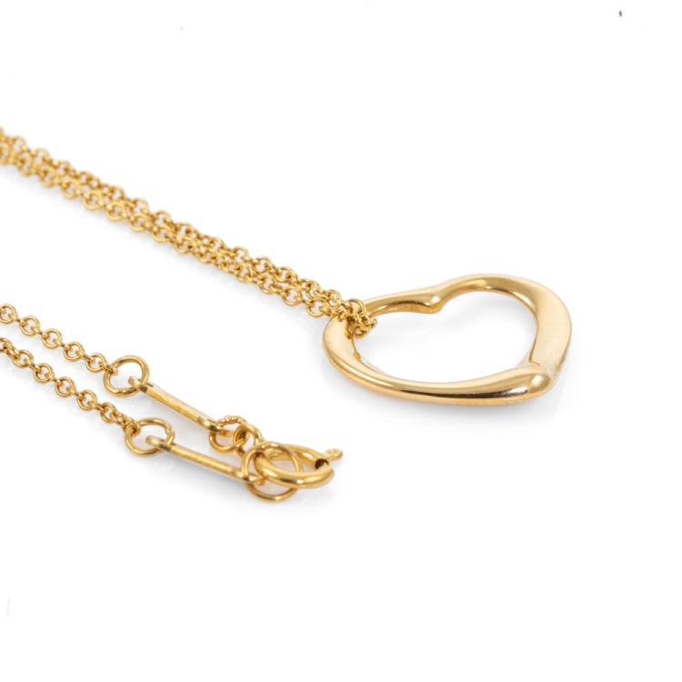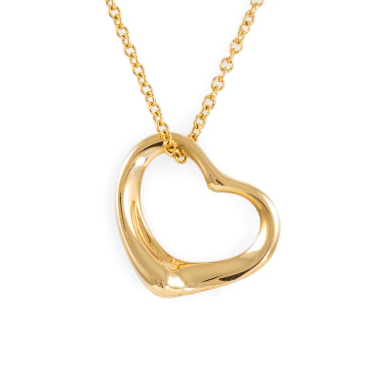 Tiffany & Co. Elsa Peretti Open Heart pendant. Motif size: 12.6mm x 15mm. 18ct yellow gold with 41.5cm chain. Weight: 2.9g. (Pre-owned)