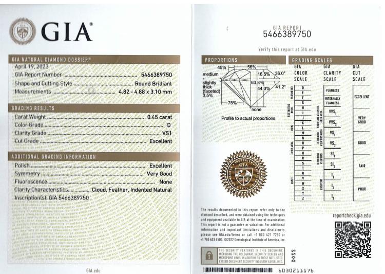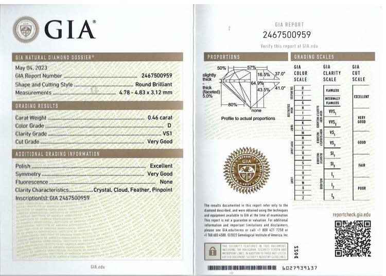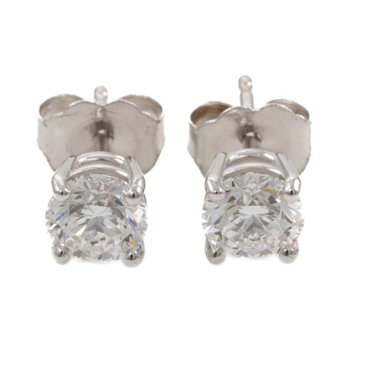 Diamond stud earrings with 2 round brilliant cut natural Diamonds totalling 0.91ct (with GIA Summary Reports graded as D VS1 #5466389750, 2467500959). 18ct yellow gold. Weight: 1.1g. (New)