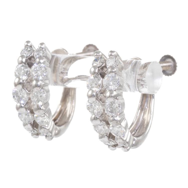 Diamond screw back clip-on earrings (for non pierced ears) with round natural Diamonds totalling 1.00ct (estimated grading: G VS). 18ct white gold. Weight: 6.4g (Pre-owned)
